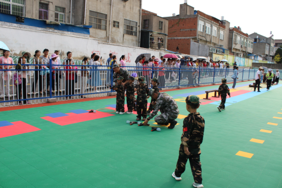 在老师和教官的组织下,小朋友们兴致高涨,积极性很高,表现得非常出色。整齐的队列、有力的步代、昂扬的斗志,充分展示了孩子们作为一名小小兵的勇敢和自豪。