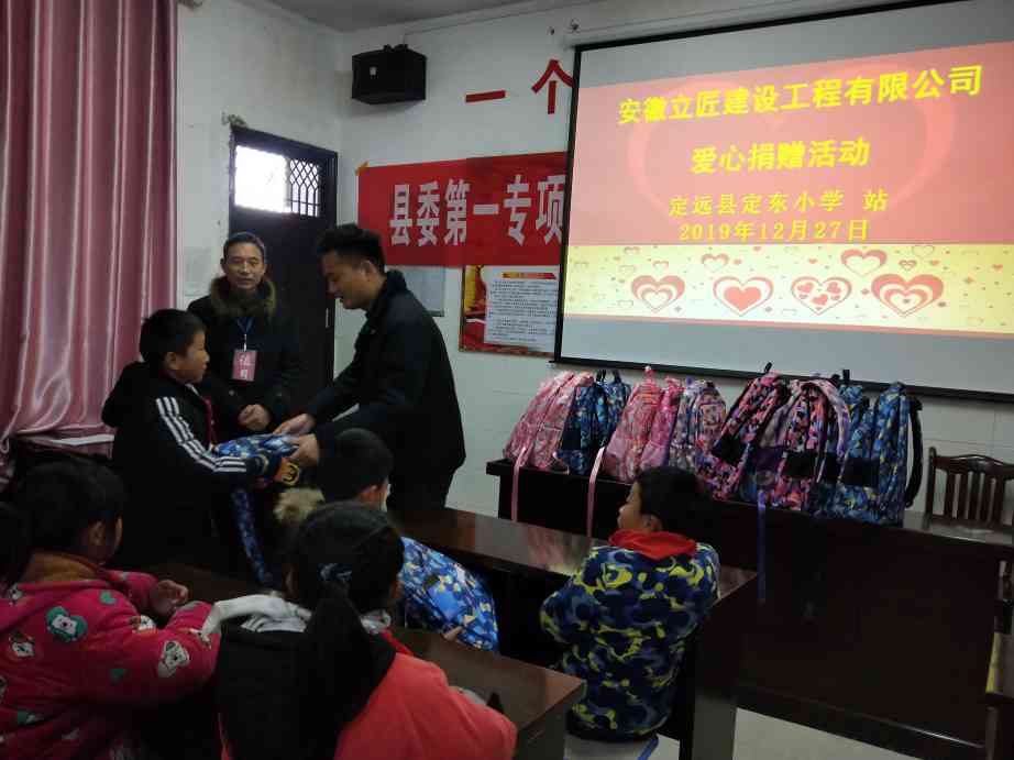 12月27日,安徽立匠建设工程有限公司来到定东小学开展爱心捐赠活动。
