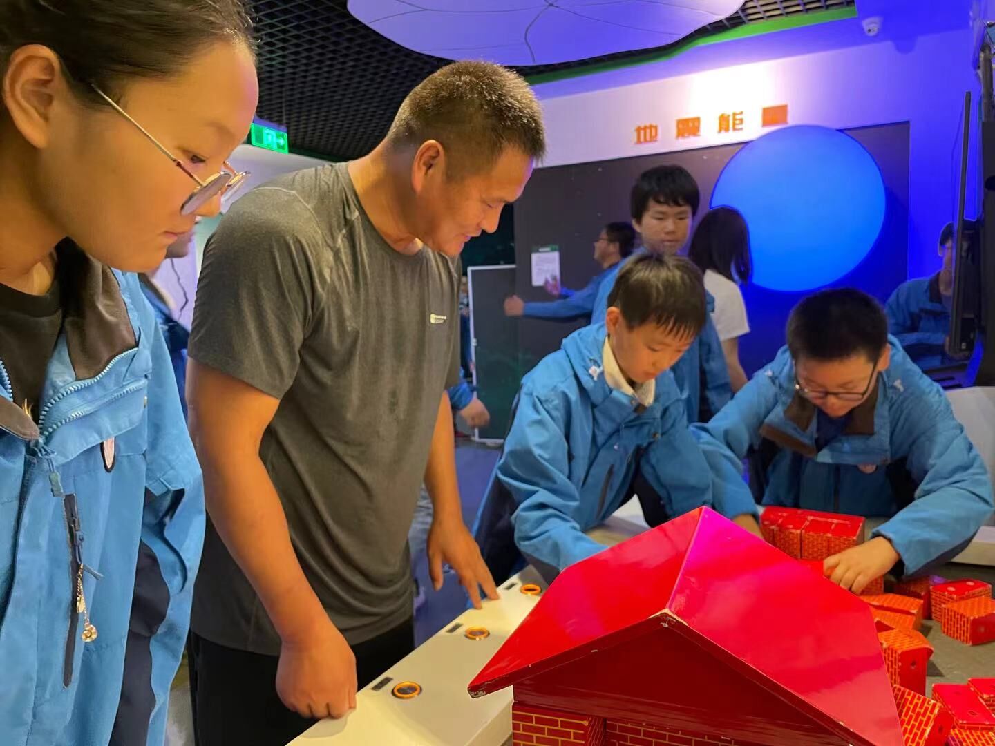 下午2点,同学们列着整齐的队伍,在老师的引领下有序进入场馆参观。在展馆内,同学们首先参观了县科技馆科普展品,观看了地震科普短片,认真聆听讲解员介绍地震发生后的应急避震方法及注意事项。随后,在地震模拟台上同学们分批体验了地震来临时的感受。通过讲解员的详细讲解和亲身实践,同学们进一步掌握了地震来临时的自救、逃生知识。