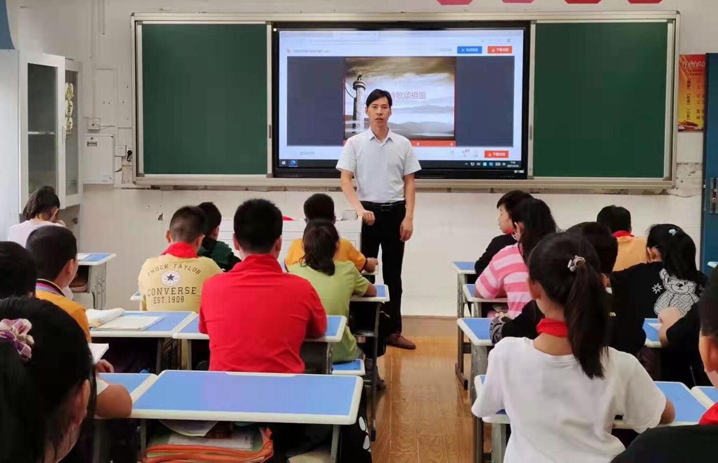 各班级在班主任带领下通过观看视频、诵读经典爱国诗歌、向国旗敬礼、我与国旗合个影等形式,表达对祖国的赞美和热爱。
