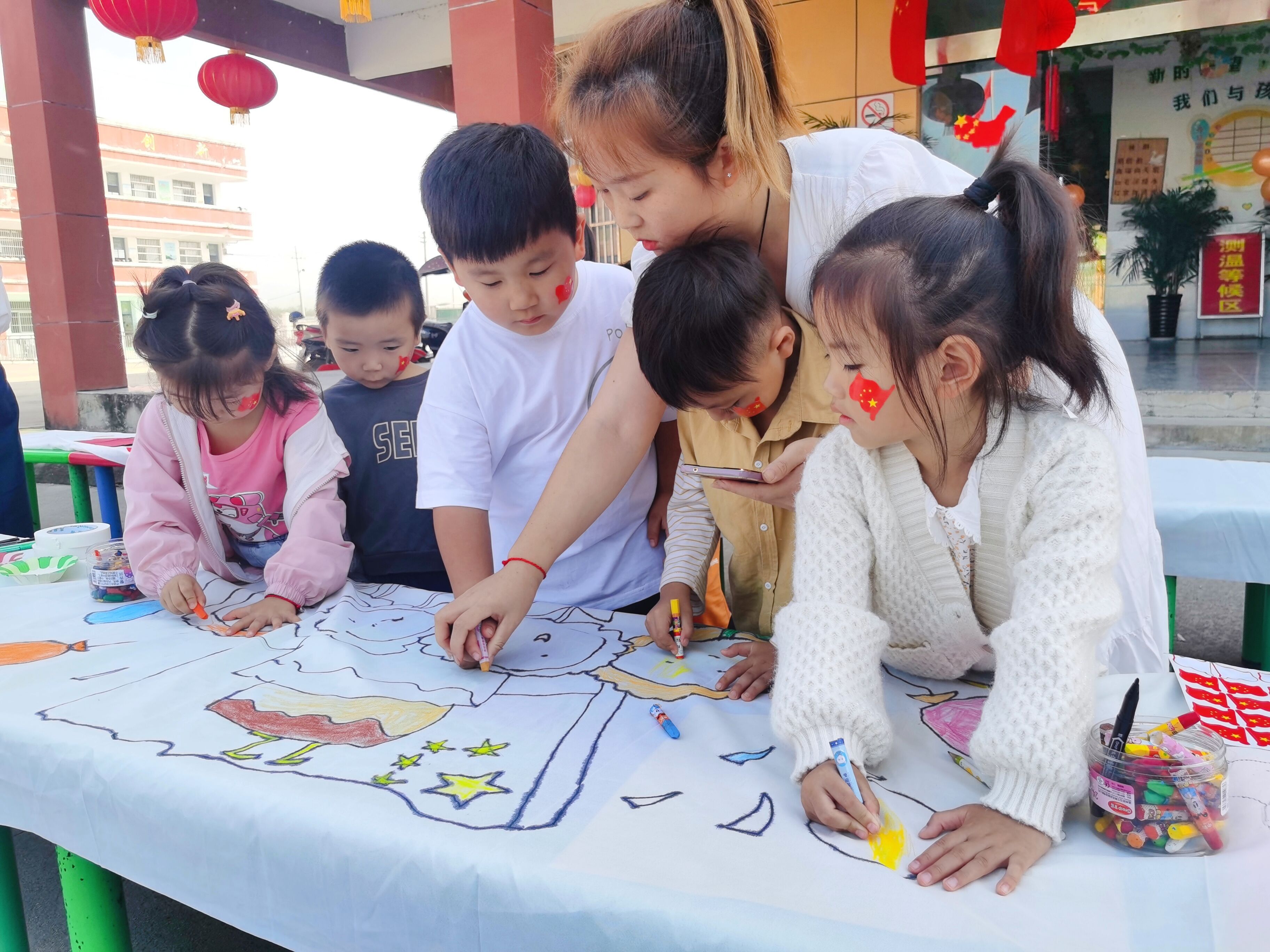 9月30日上午,定远县能仁中心幼儿园举办“童心向党,礼赞百年”百米画卷现场绘画活动。