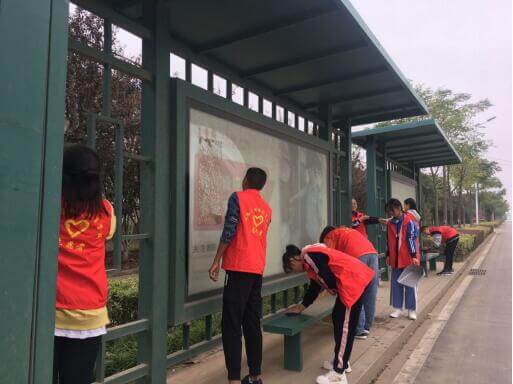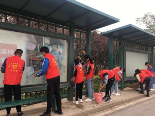 学生们拿起了扫把和抹布等工具,开始清理站牌宣传窗口碎掉的玻璃和擦拭座椅灰尘等。他们相互分工协作,提水的、擦拭的、清扫的,忙的有条不紊。他们不怕脏、不怕苦、不怕累,两个站台很快焕然一新。志愿者们所表现出的劳动热情以及文明风采受到了路过的人们和公交车驾驶员的赞扬,他们忙碌的身影成为一道靓丽的风景线。