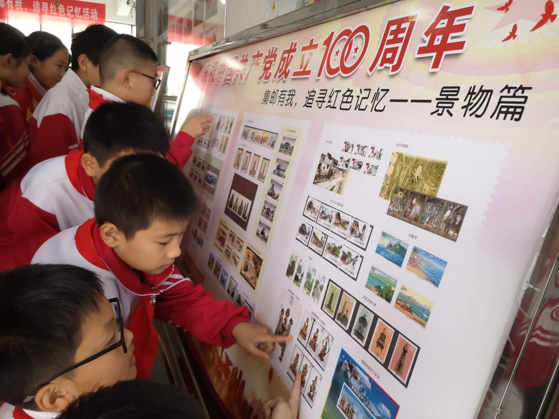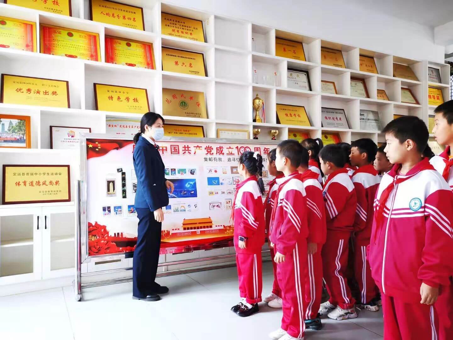 定远县邮政公司工作人员来到红领巾邮局现场,通过精彩的讲解,让小队员们对邮政知识有了更全面更深刻的认识。少先队员们兴趣盎然地欣赏着制作精美的邮册和精心准备的展板,时而谈论着邮票中一个个红色故事,时而询问讲解员邮票里的学问。一枚枚红色邮票让少先队员们从中感受到中华民族的伟大历史以及中国共产党百年来的风雨历程和光辉成就。