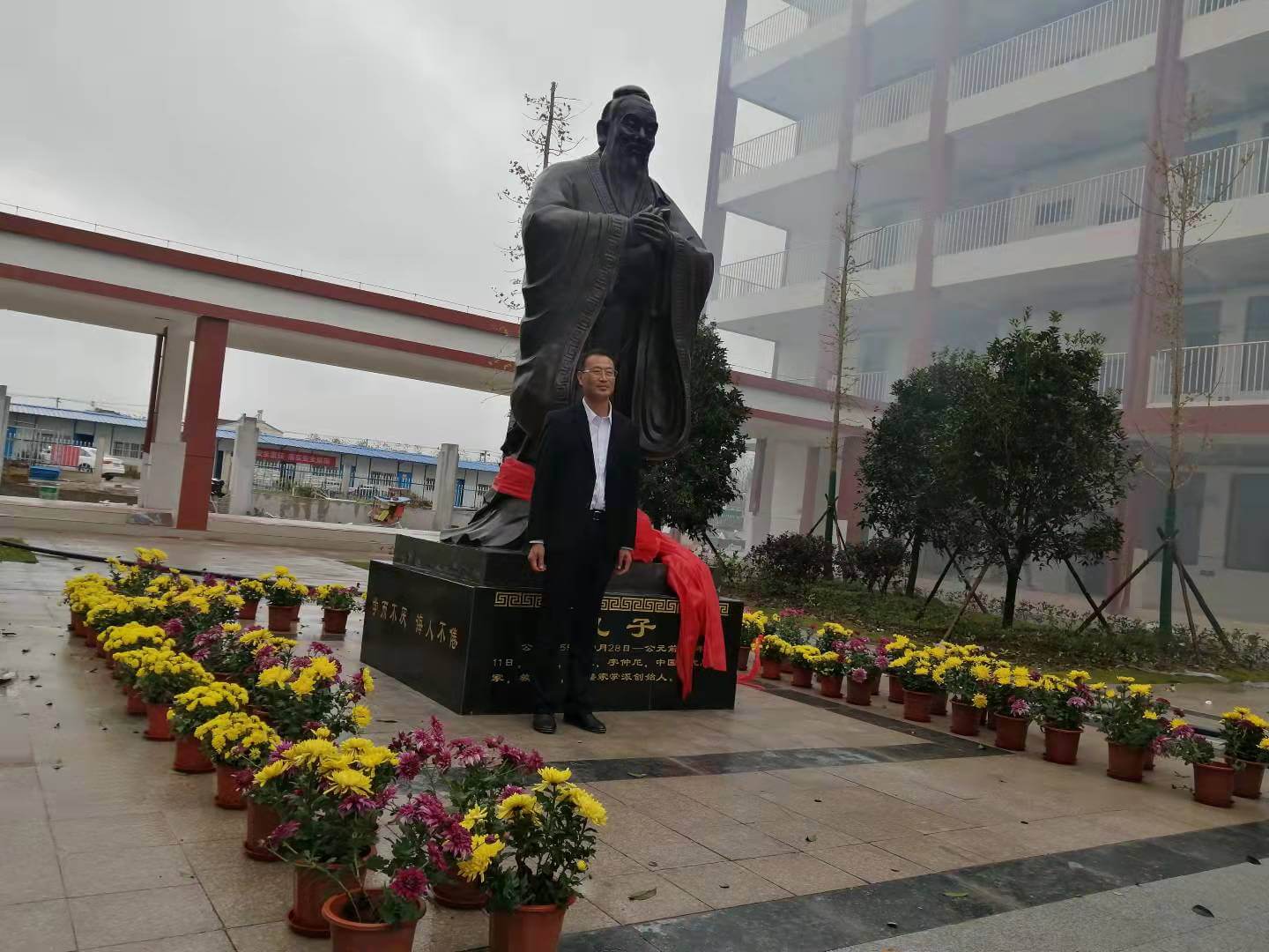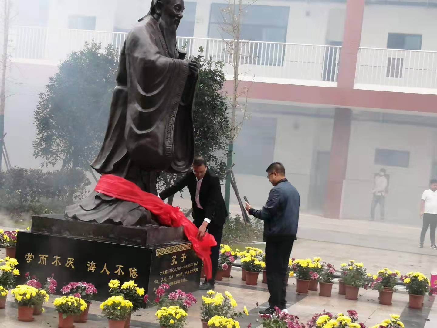 ~ 10月10日,定远县第一初中教育集团双塘中学校区举行了孔子雕像揭幕仪式。集团全体校级领导、双塘中学校区部分教师和安徽联邦建筑安装有限公司负责人参加了此次活动。