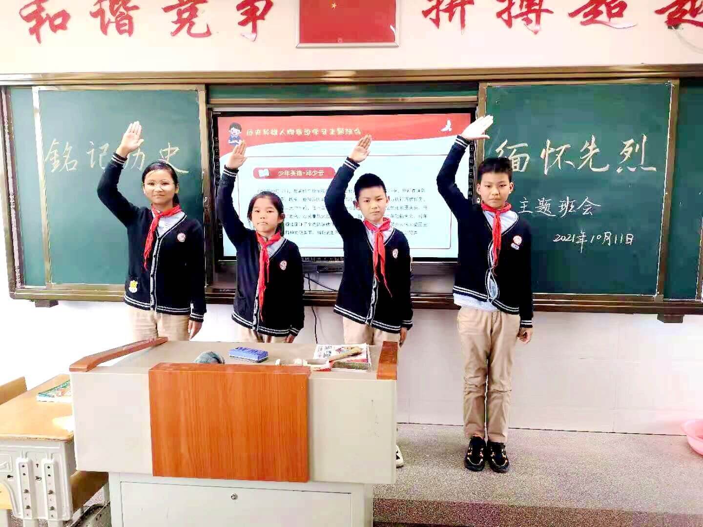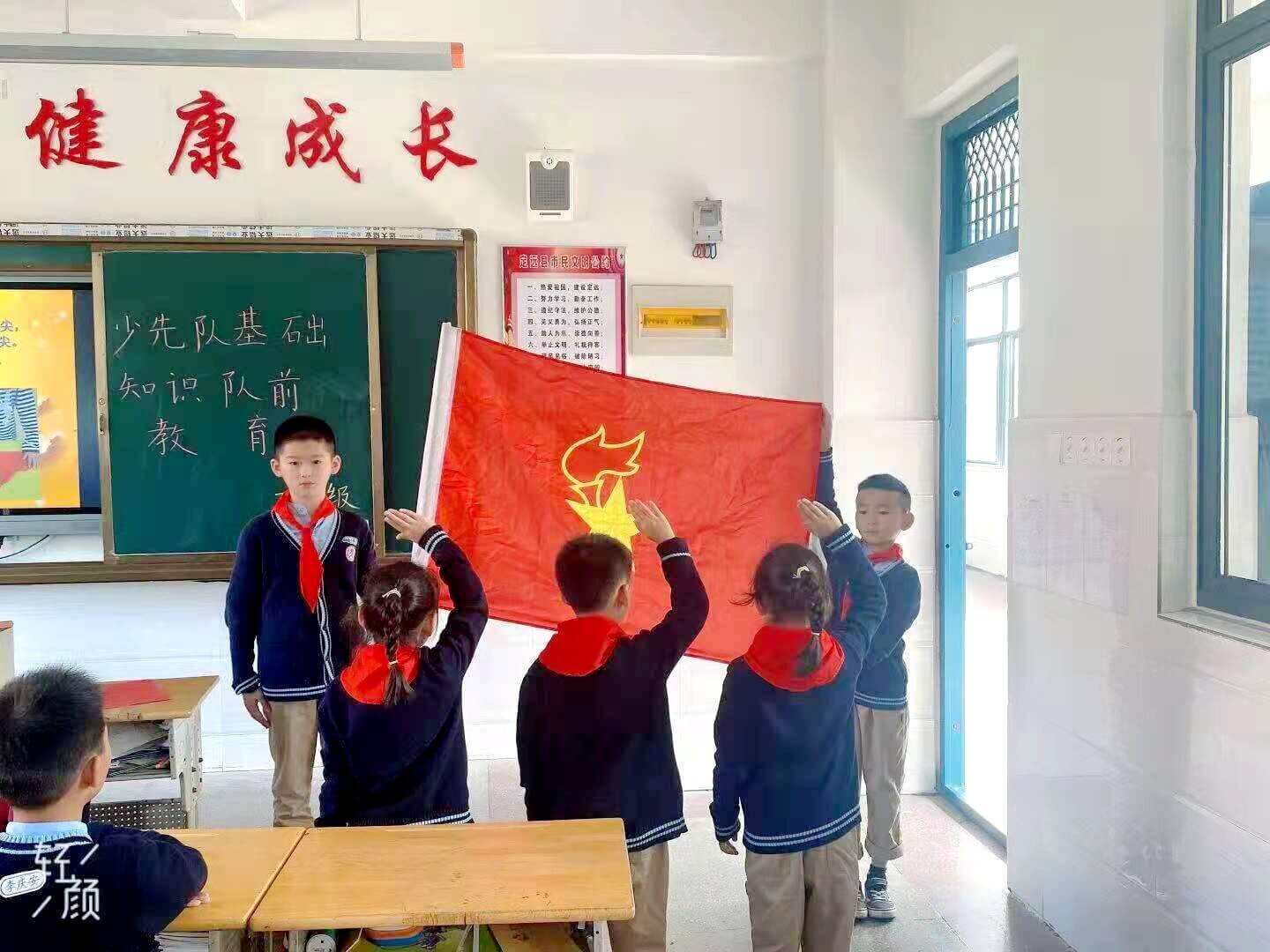 ~ 活动中,大队辅导员详述了少先队的队旗、队徽、队史和队章,有的少先队的队员们给大家讲解执旗的正确姿势、重温少先队誓词、唱队歌、讲先烈故事,学习他们的伟大精神。学校还对一年级的同学们进行了队前教育,希望他们早日加入少先队组织。