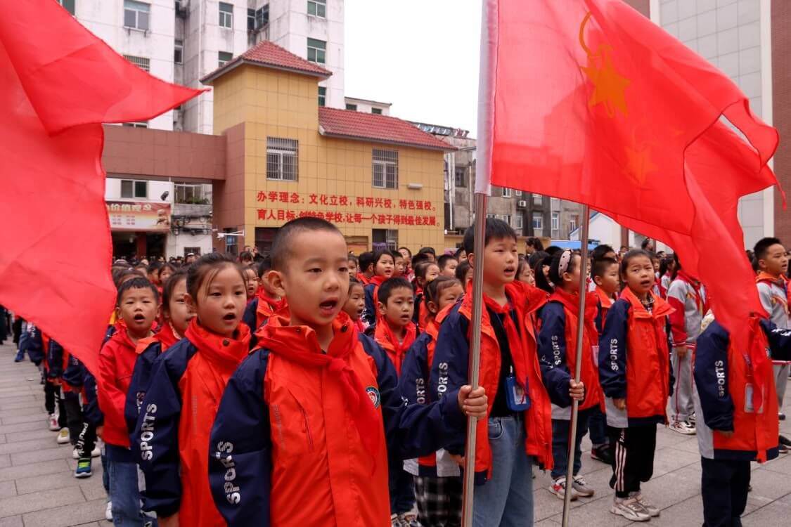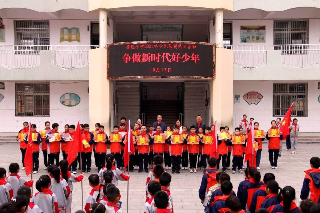 ~ 建设小学党支部书记、校长陈灯荣对所有队员表达了期望,希望队员们从小播种红色的种子,牢记革命精神,传承红色基因,在少先队这个先进的大集体中,学习做人、学习立志、学习创造,为胸前的红领巾增光添彩。