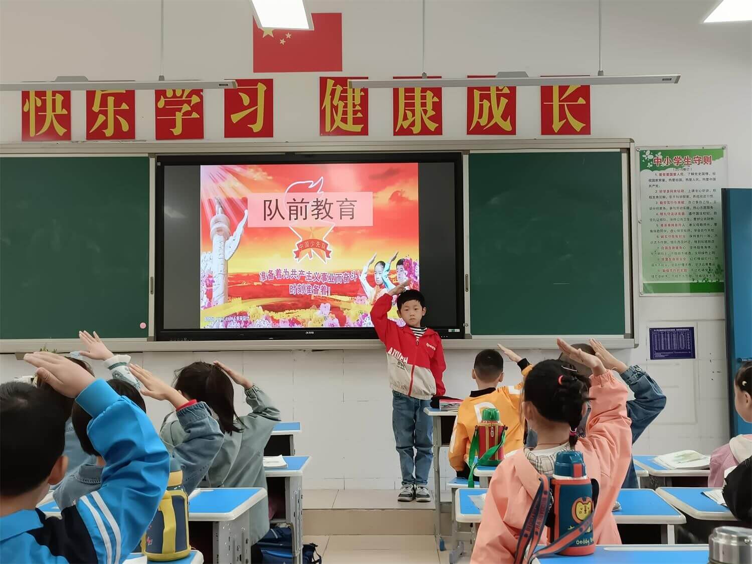 入队前,一年级各班主任对新同学进行了规范的入队培训。新队员们学唱了《少年先锋队队歌》 ,学会了敬队礼,了解了红领巾、队旗、队徽、队礼、呼号及其意义。