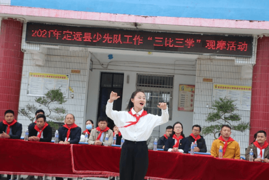 ~ ( 李婷婷 杜家奎)10月13日,安徽定远县少工委、县教体局、团县委联合举办的2021年定远县少先队工作“三比三学”观摩活动在天河小学成功举行。县教体工委副书记黄如勇,团县委书记李大鹏,县青少年活动中心副主任、县少先队总辅导员雍敏等参加活动。