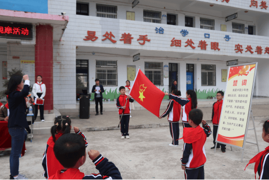 活动分三个阶段进行:少先队文化及品牌活动展示、入队仪式和观摩人员座谈交流。十月的金风清爽怡人,十月的歌声激昂真诚。庄严的国歌声中,升旗手精神抖擞地出旗,建队仪式拉开了帷幕。全体队员们庄严立正、行队礼,高唱中国少年先锋队队歌,铿锵的旋律,整齐的节奏,令人激情澎湃。