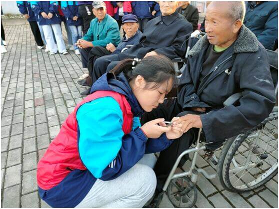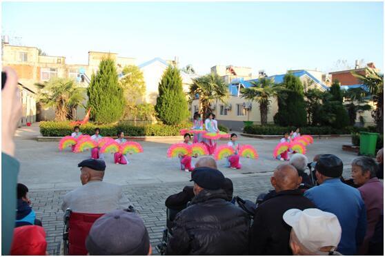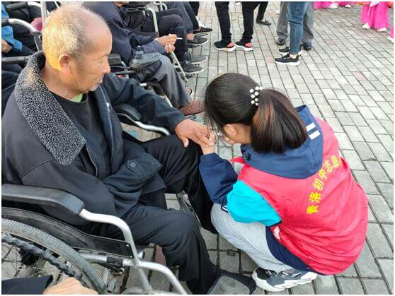 演出活动后,同学们有的为老人捶背、揉肩、剪指甲,有的陪老人散步、聊天,有的走进老人的宿舍,打扫卫生,整理床铺,同学们对老人嘘寒问暖,老人们也嘱咐孩子们要珍惜现在美好的生活,好好学习,将来报效祖国,敬老和爱幼的浓情溢于言表。