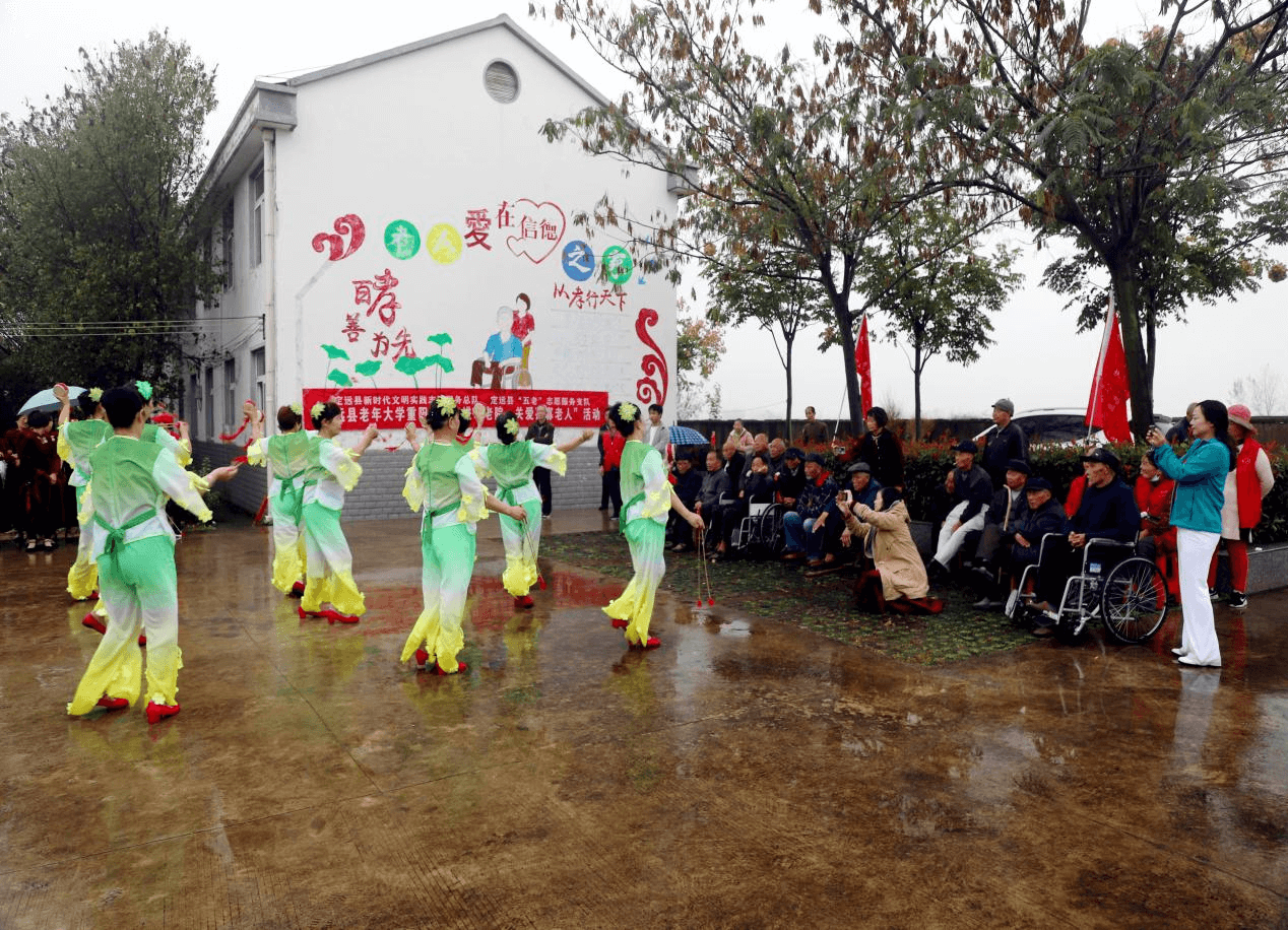 尊老、敬老、爱老是中华民族的传统美德,关爱老人是每个人的社会责任和义务,活动不跟风,不走形势,把公益活动落到实处。此次活动县老年大学组织了“五老”志愿服务支队60余名志愿者,冒雨来到定城镇敬老院慰问。校领导深入了解老人们的生活情况,帮困助困与孤寡老人促膝谈心并进行思想上的沟通交流 。浓浓的情,暖暖的爱,敬老院里洋溢着欢乐祥和的气氛。各级领导、志愿者们把带去的慰问品,分发给老人,老人们连声说“谢谢党和政府的关怀!”。