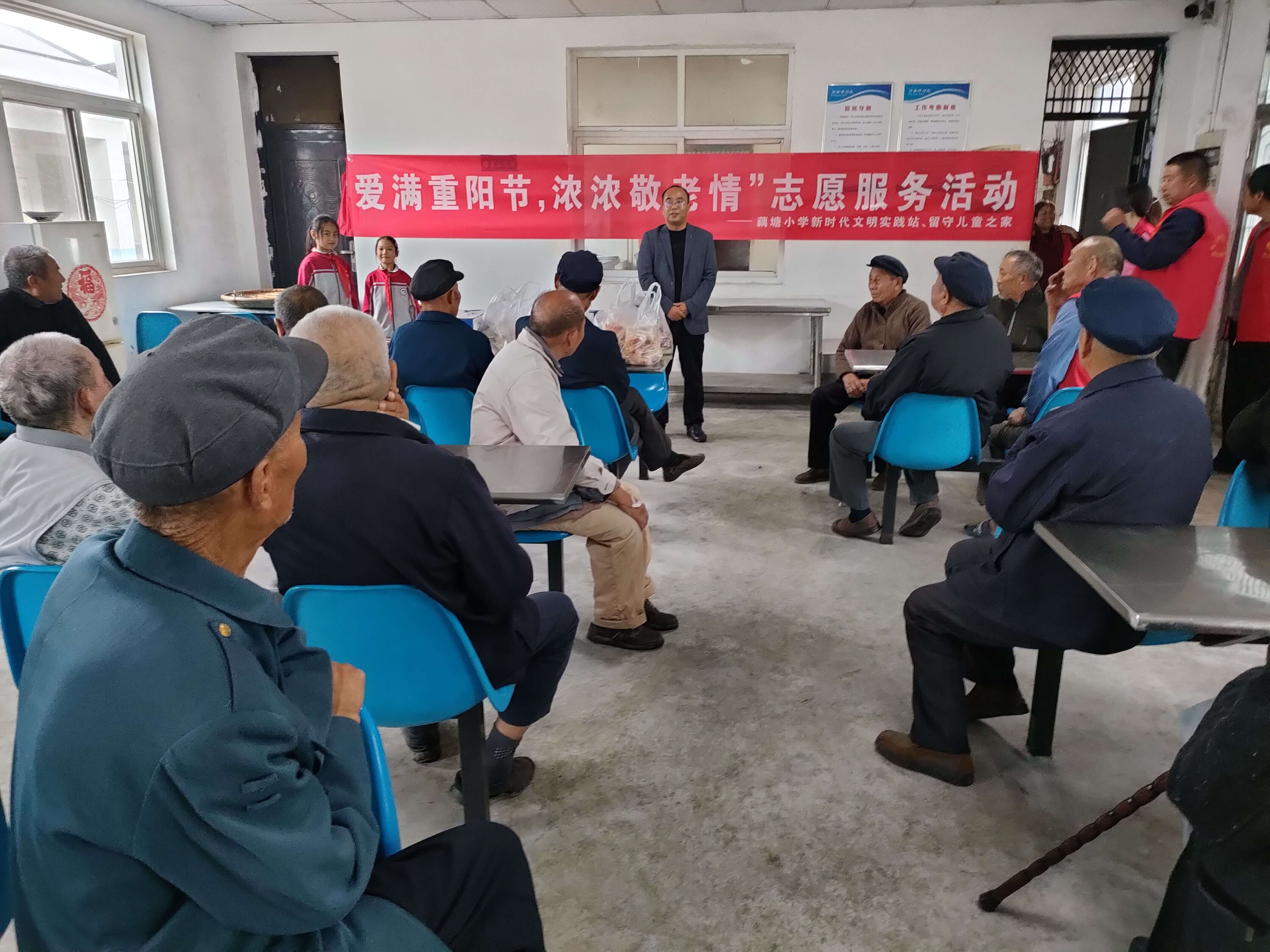 10月14日,重阳节当天,定远县藕塘小学新时代文明实践站携该校留守儿童之家开展“爱满重阳节,浓浓敬老情”志愿服务主题慰问活动。