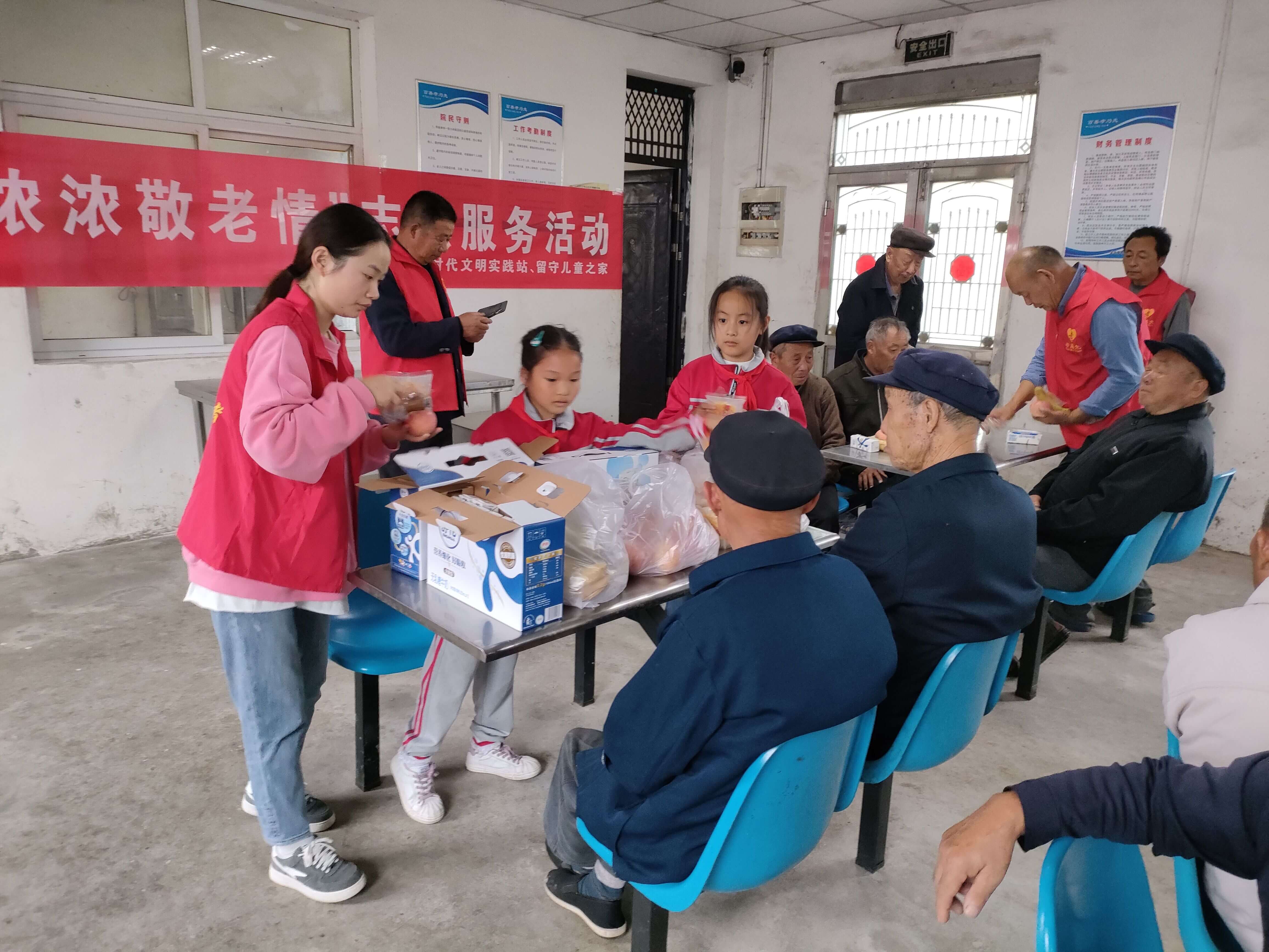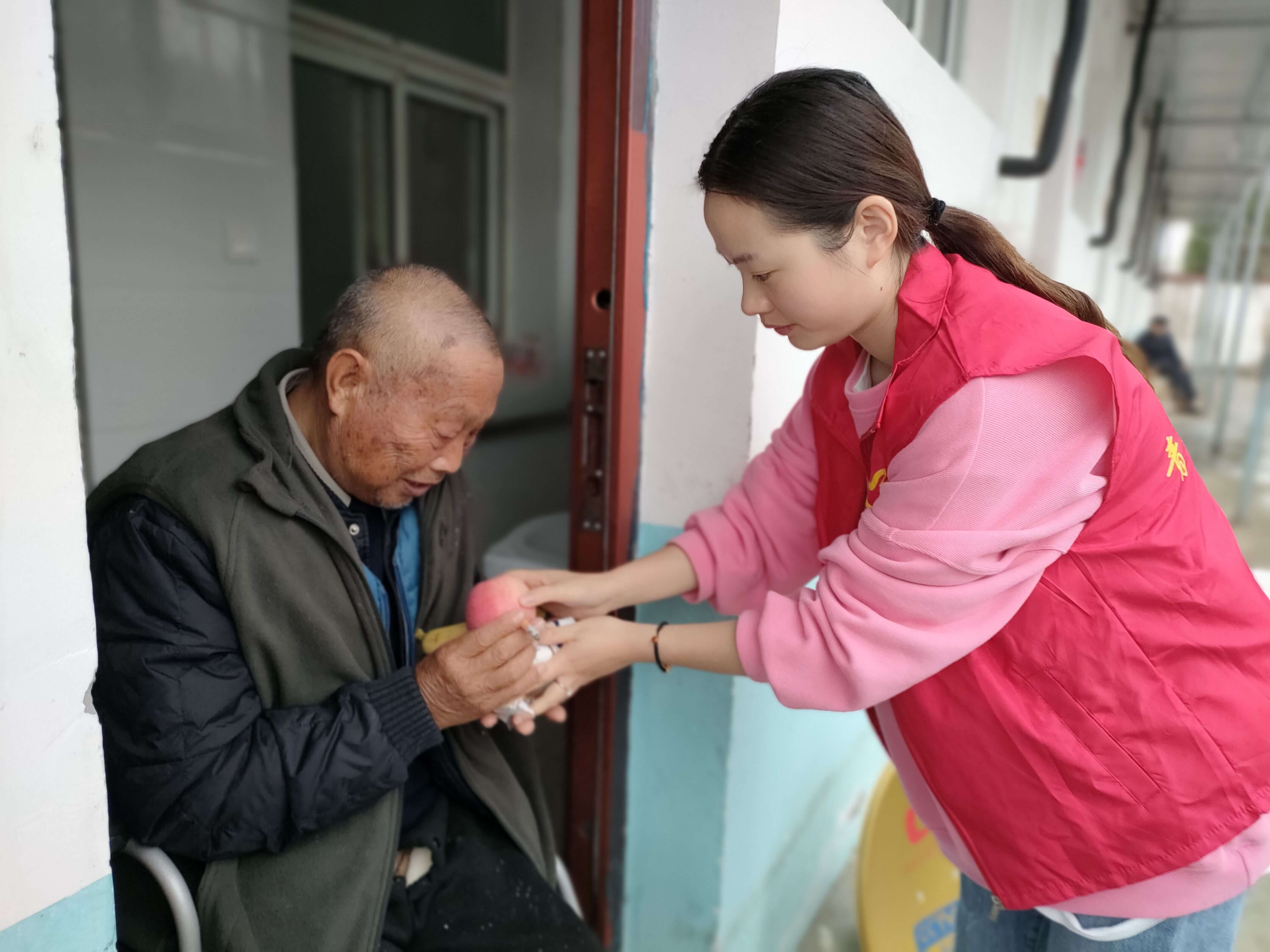 在该校大队辅导员带领下,志愿者老师、留守儿童之家管理员以及两位留守儿童代表一行来到了藕塘镇敬老院,为老人们送来了节日的祝福和爱心礼物。