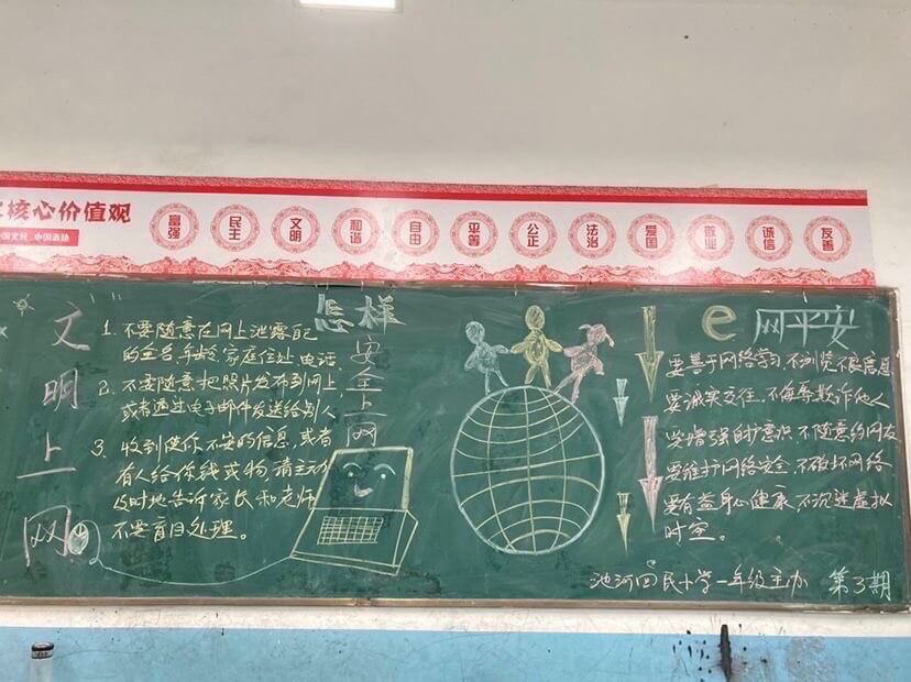 会后,为确保宣传周活动达到预期效果,学校利用宣传栏、电子屏、班级微信群等形式进行网络安全教育宣传,营造浓厚的氛围。组织1至6年级学生举办了以“网络安全”为主题的手抄报和黑板报评比活动。