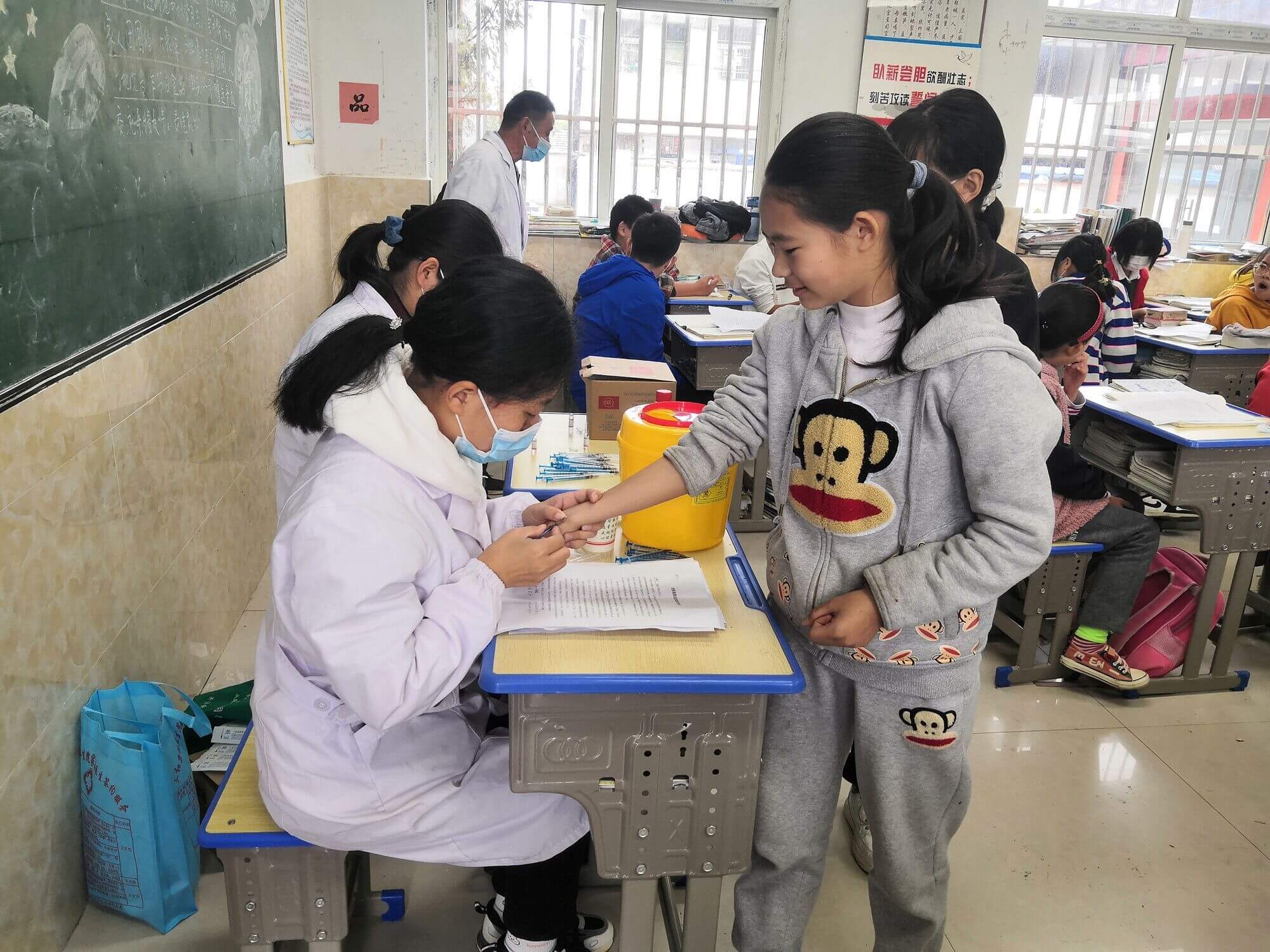 10月19日,定远县三和集镇卫生院医护人员来到三和学校,对该校七年级新生开展结核病筛查体检工作。此次结核病筛查体检采用的方法是结核菌素皮肤试验(PPD检验),需要在左前臂屈侧做皮内注射。