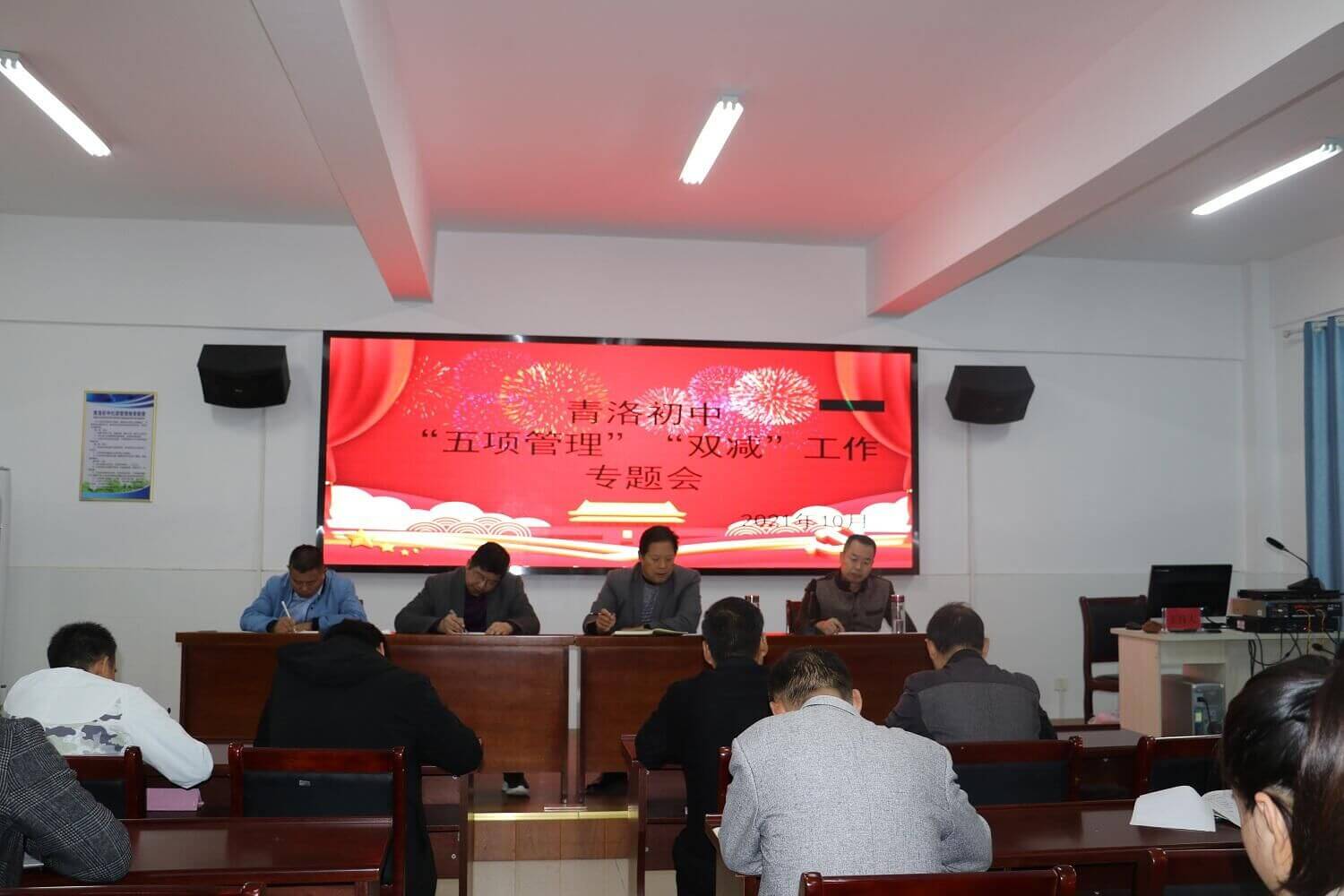 为进一步贯彻落实党的教育方针,培养学生德智体美劳全面发展,确保“五项管理”与“双减”政策落地见效。10月20日,青洛初中在新综合楼三楼会议室召开“五项管理”及“双减”工作推进会。会议由青洛初中党支部书记、校长单国选主持,全体教师参会。