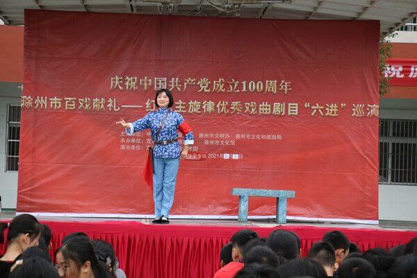 ~ 为了扎实开展党史学习教育,弘扬中华优秀传统文化,传承戏曲艺术,定远县文广新局组织永恒戏曲艺术团,于2021年11月2日,走进张桥中学,开展“戏曲进校园”活动。