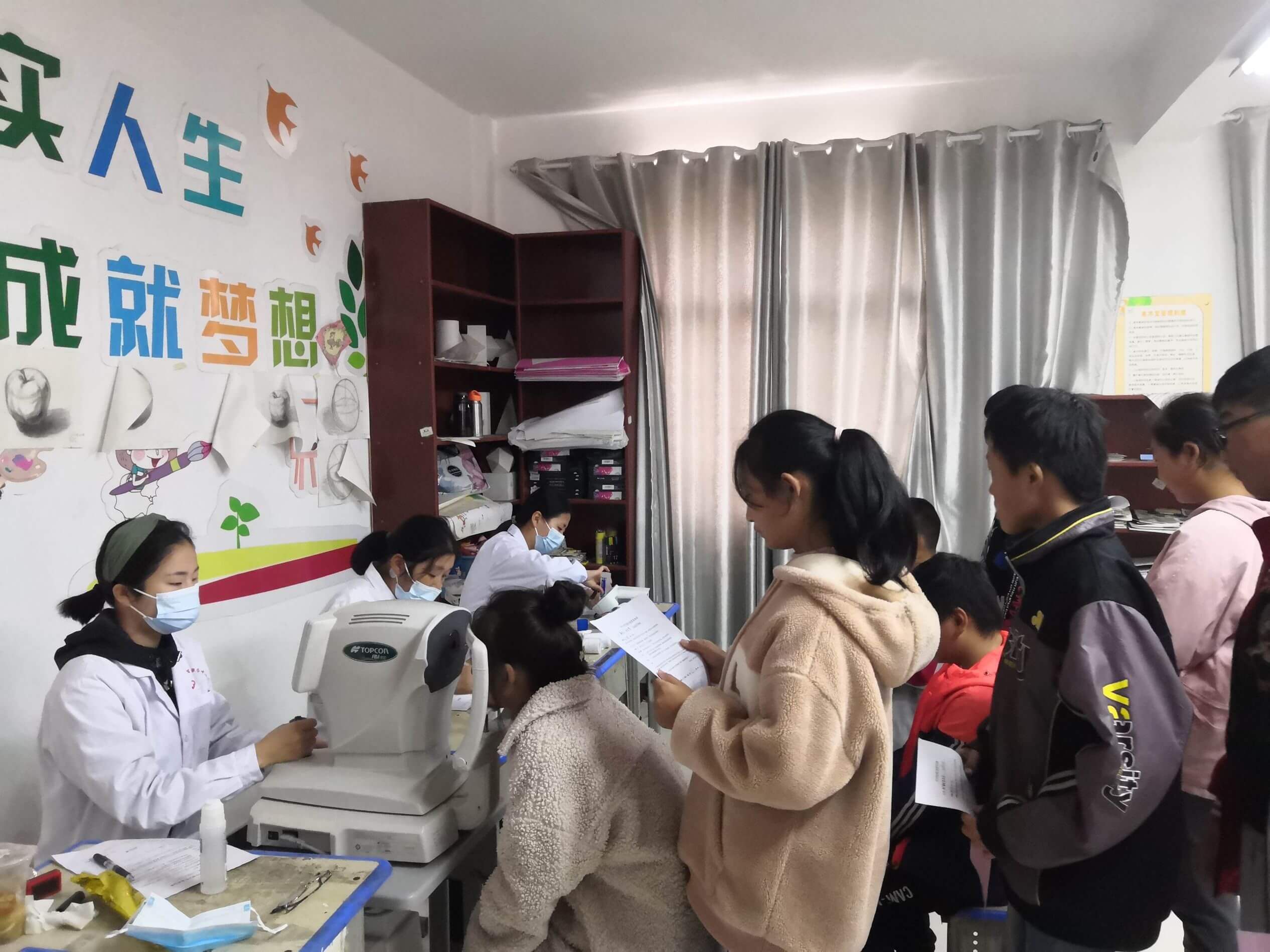 检查时,各年级学生在班主任和课任老师的配合组织下,分批次、分时段有序来到检查室。医生们为每一个学生进行了认真的检查,发现问题都及时告知了学生。经检查该校学生视力总体情况良好,少部分学生视力状况不佳。