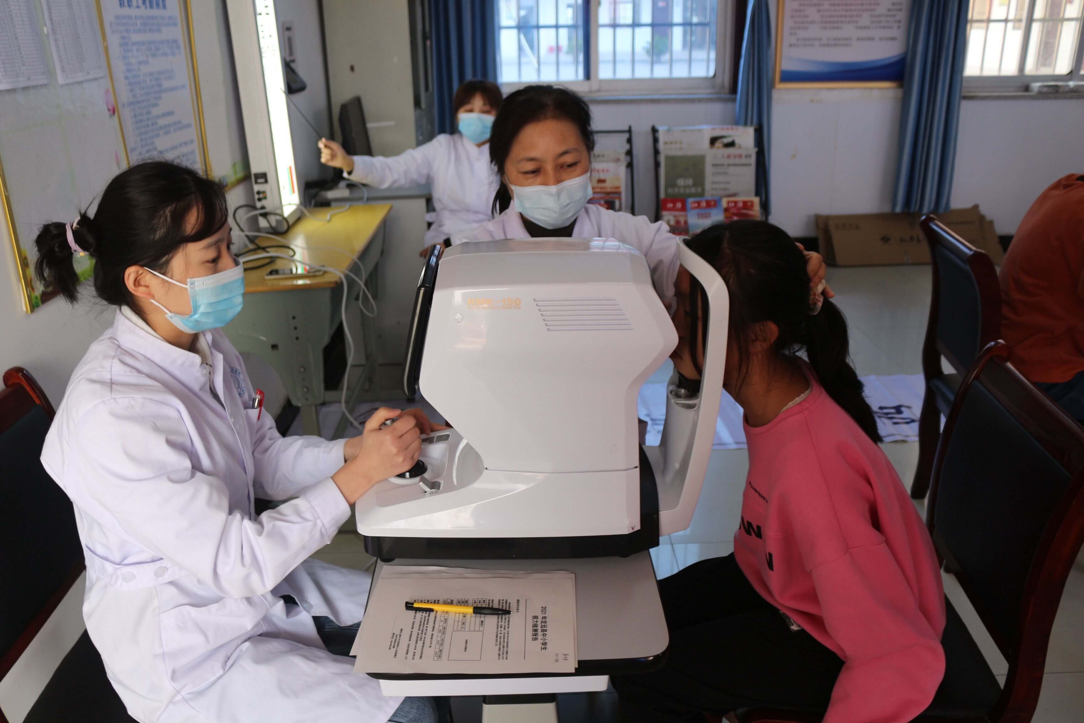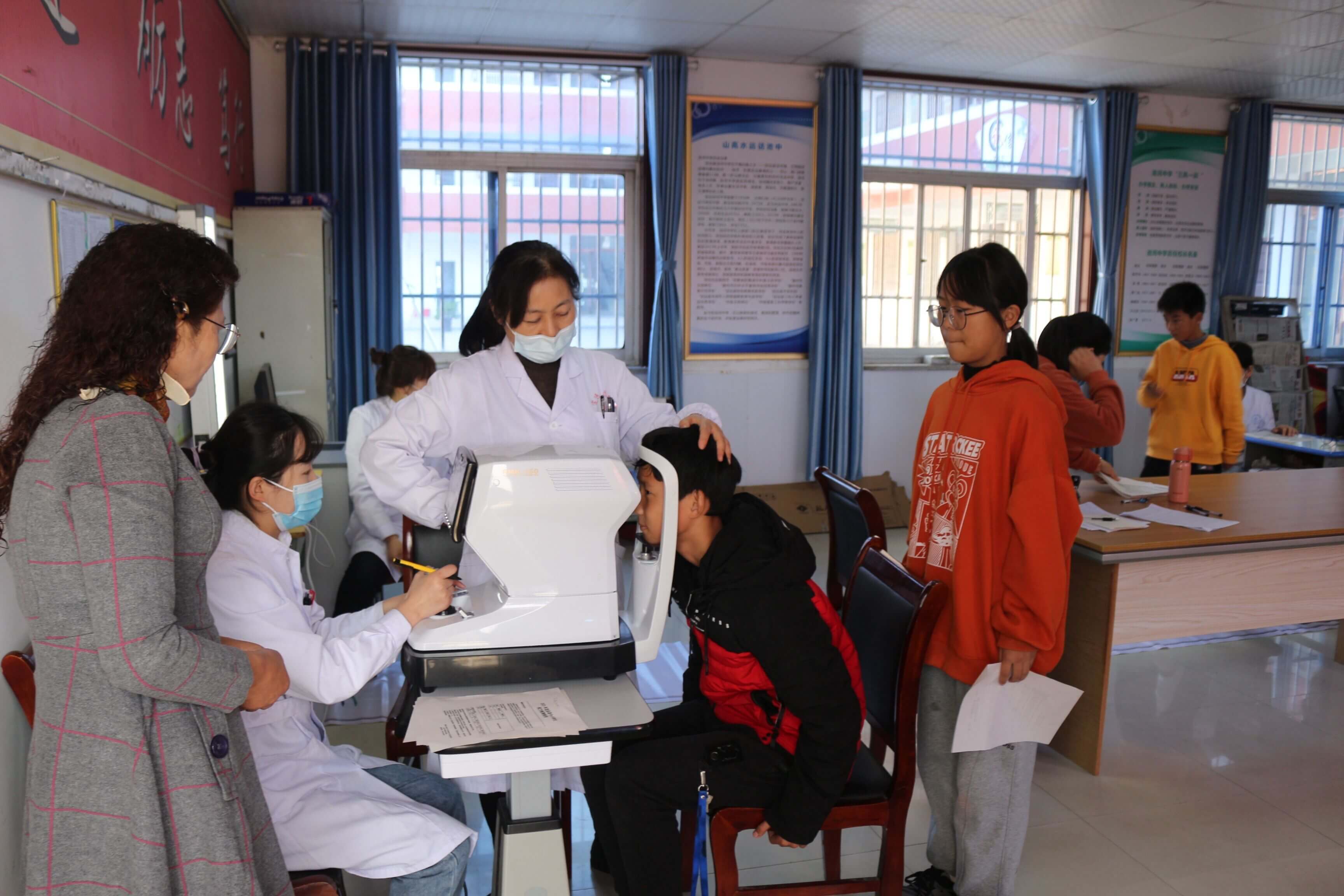 ~ 在监测现场,各年级学生在年级主任和课任老师的配合组织下,分批次、分时段有序来到检查室。医务人员为每一个学生进行了认真的检查,并逐一进行登记,建立学生视力检测报告单,发现问题现场告知学生。整个监测现场,该校学生都积极配合,整个过程井然有序。