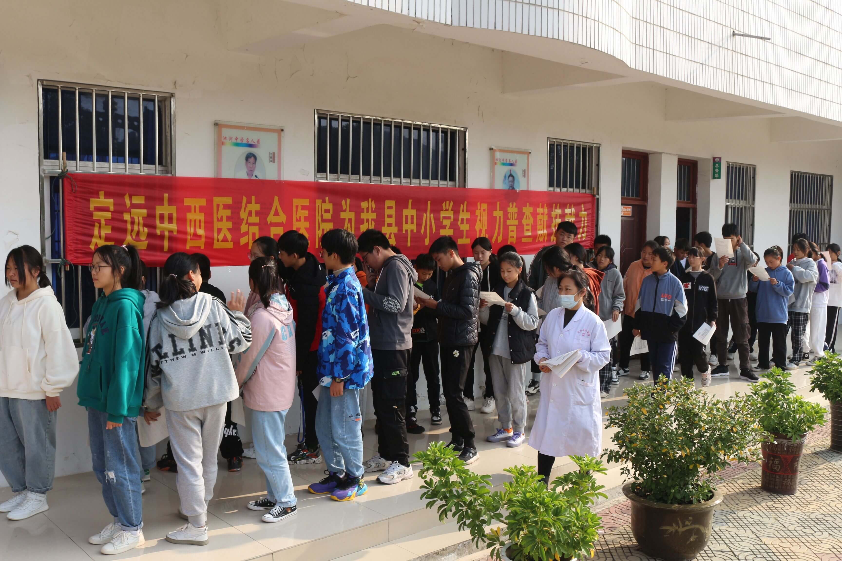 ~ 为及时了解和准确掌握学生的视力状况,促进学生视力健康,认真落实“双减”工作、“五项管理”规定, 11月4日,定远县中西结合医院医务人员走进池河中学对七、八、九年级570名学生进行视力监测活动。