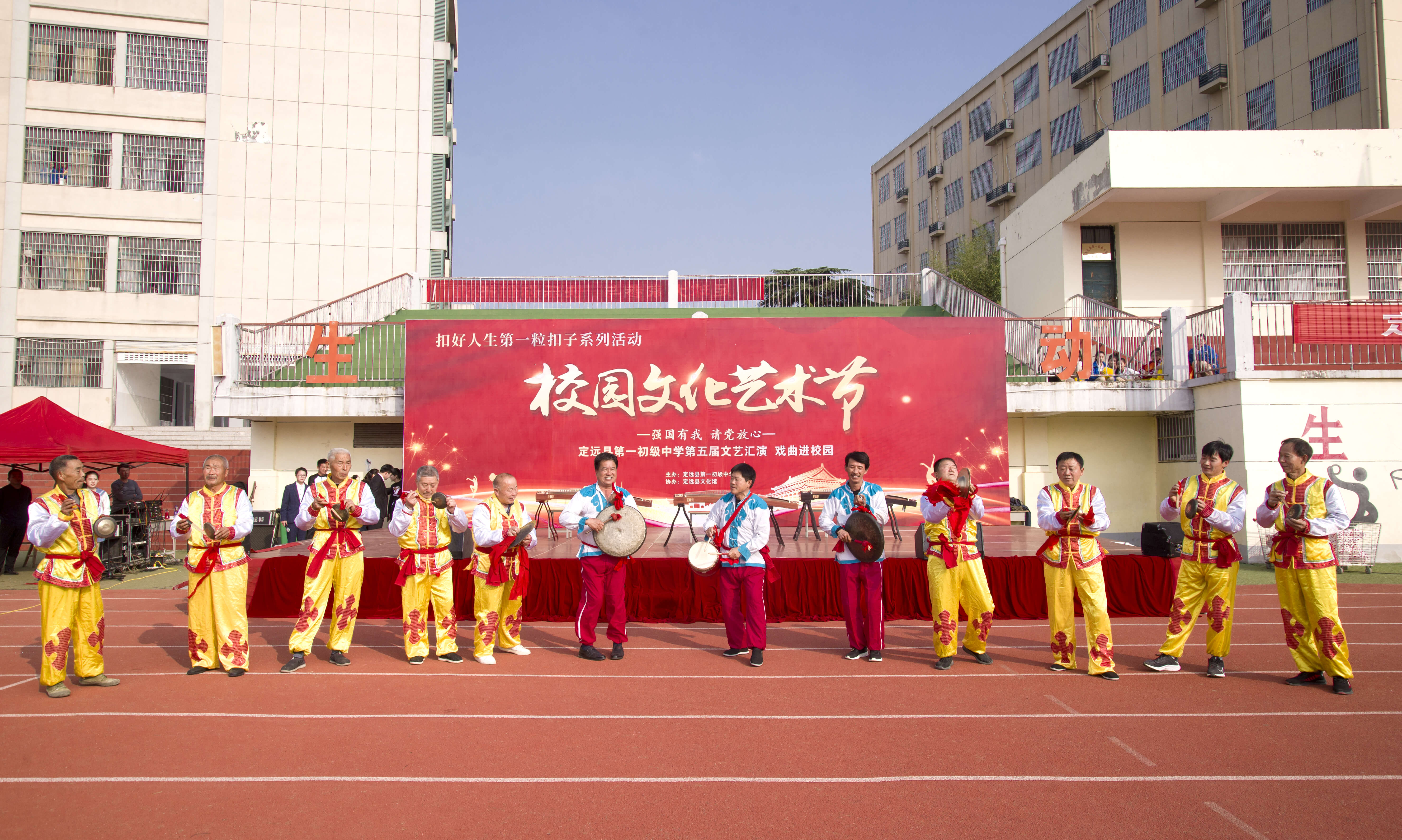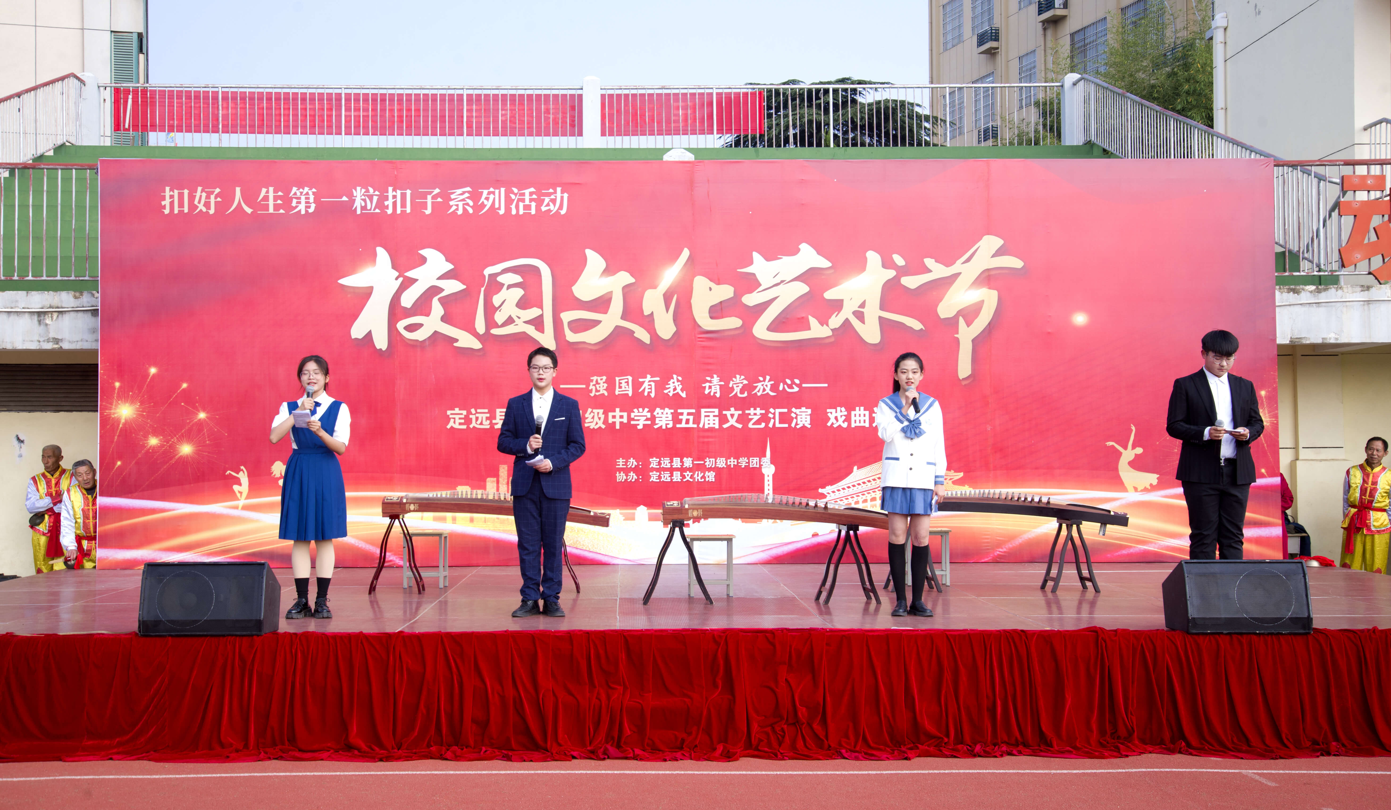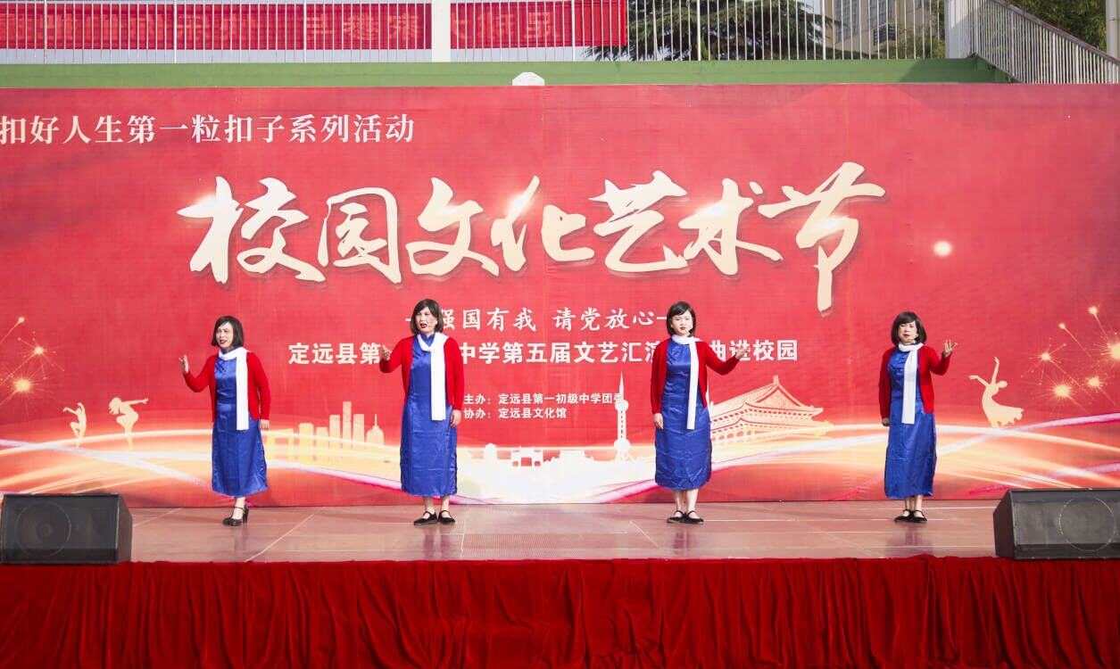 ~ 金秋时节,桂香阵阵。为庆祝建党100周年,抒发爱国情怀,坚定理想信念,为全面推进“五育并举”,落实好“五项管理”和“双减”政策,提高学生艺术素养。11月3日,定远县第一初中教育集团在南环路校区举办了“请党放心 强国有我”校园文化艺术节汇演活动。县教体局、文化馆领导受邀参加。本次活动由学校团委主办,县文化馆协办。