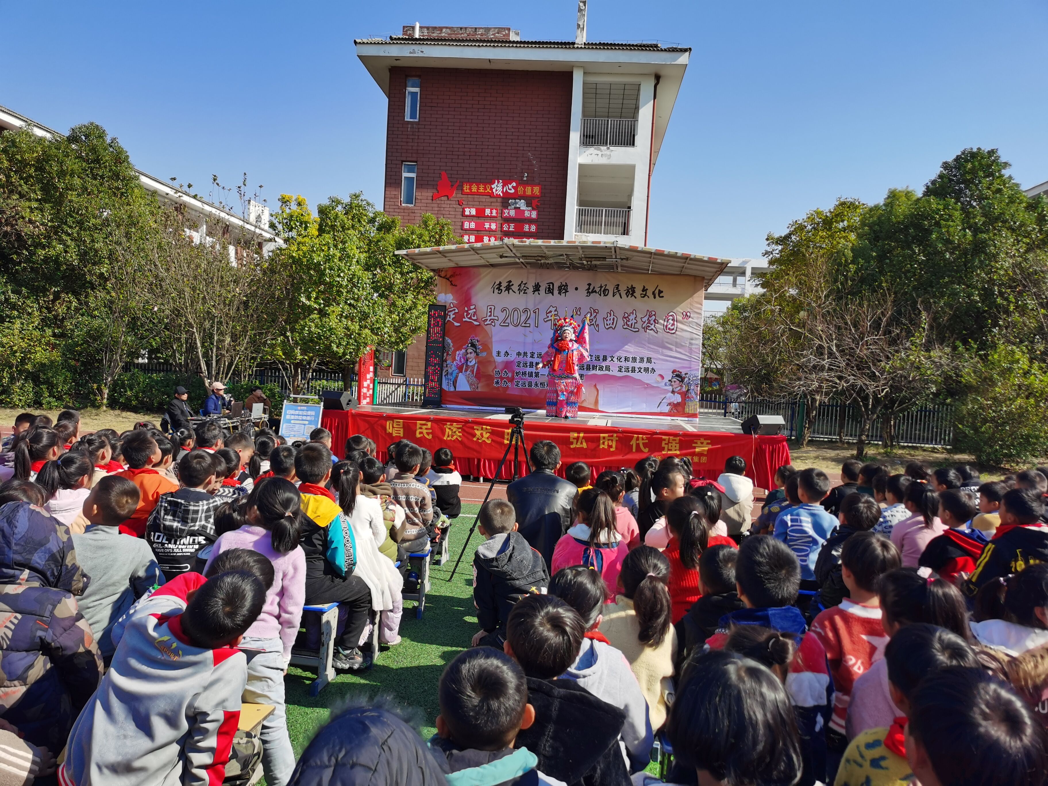 ~ 为传承和弘扬中华民族优秀传统文化,培养师生良好的审美情趣和艺术素养,11月10日上午,炉桥镇第一小学教育集团开展“戏曲进校园”活动。 ~ 演出中,定远县永恒戏曲艺术团的艺术家们…