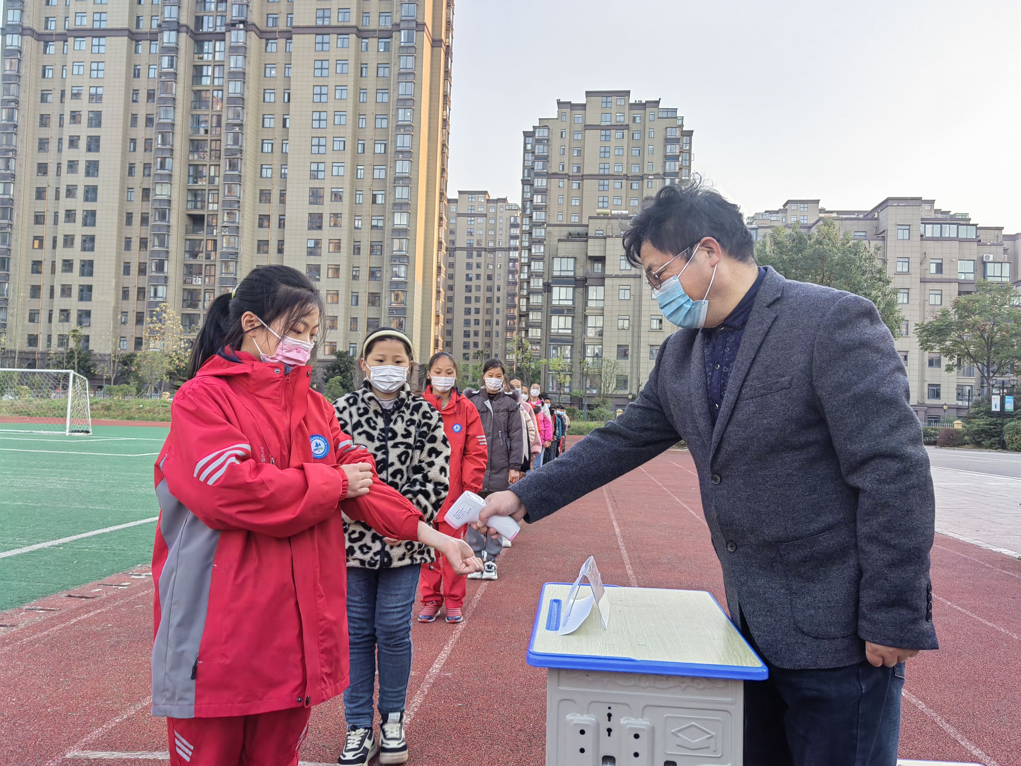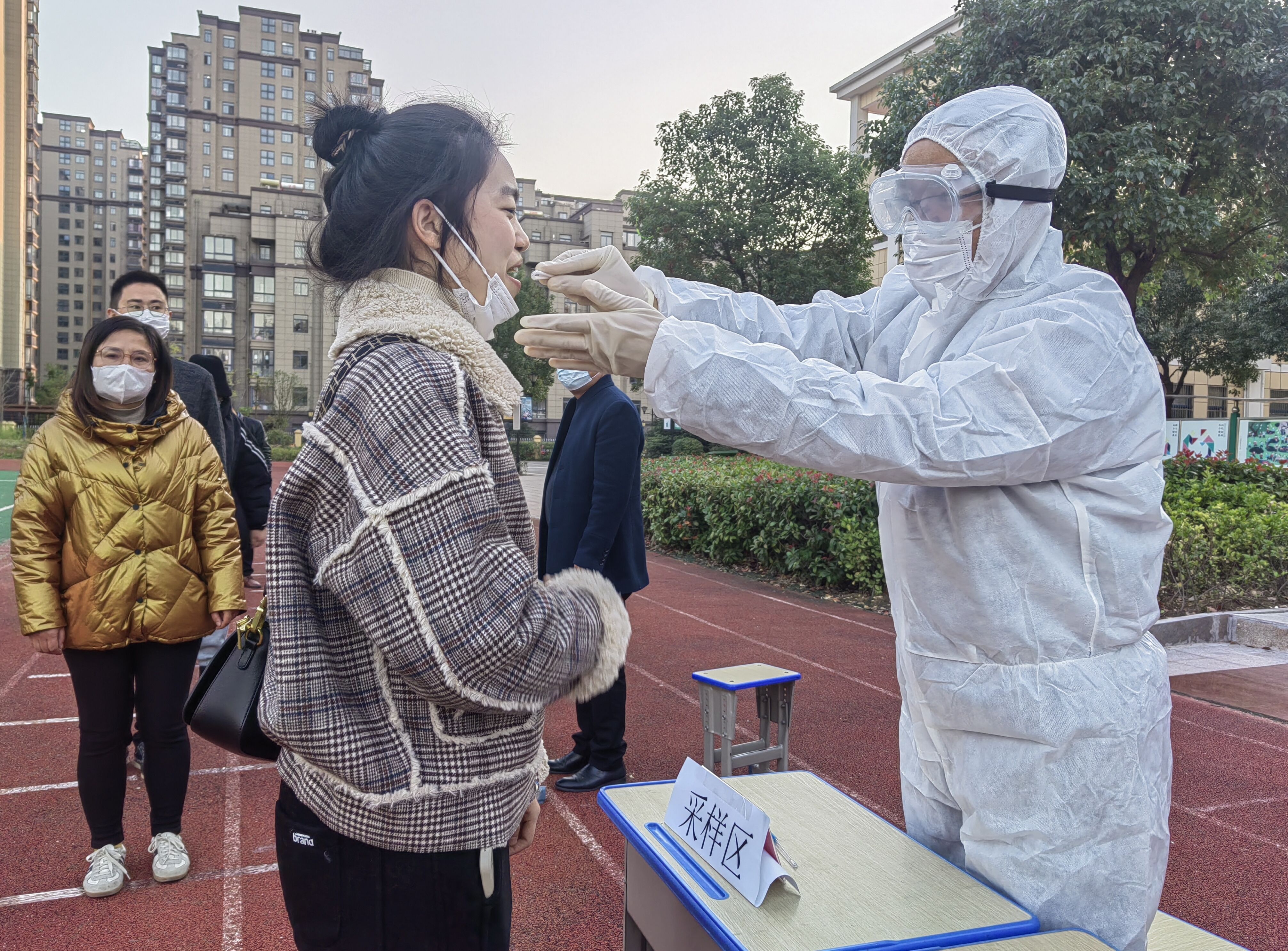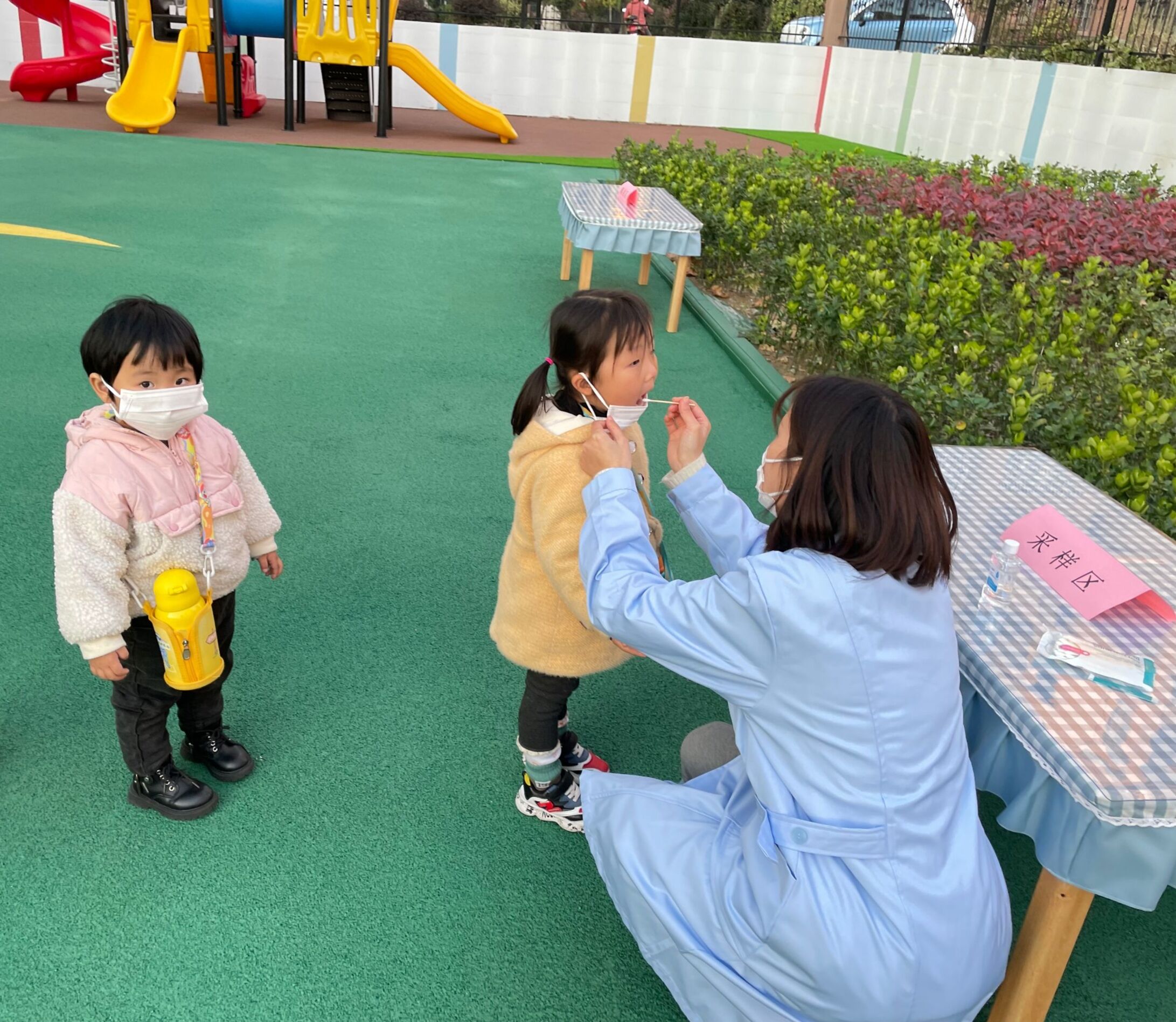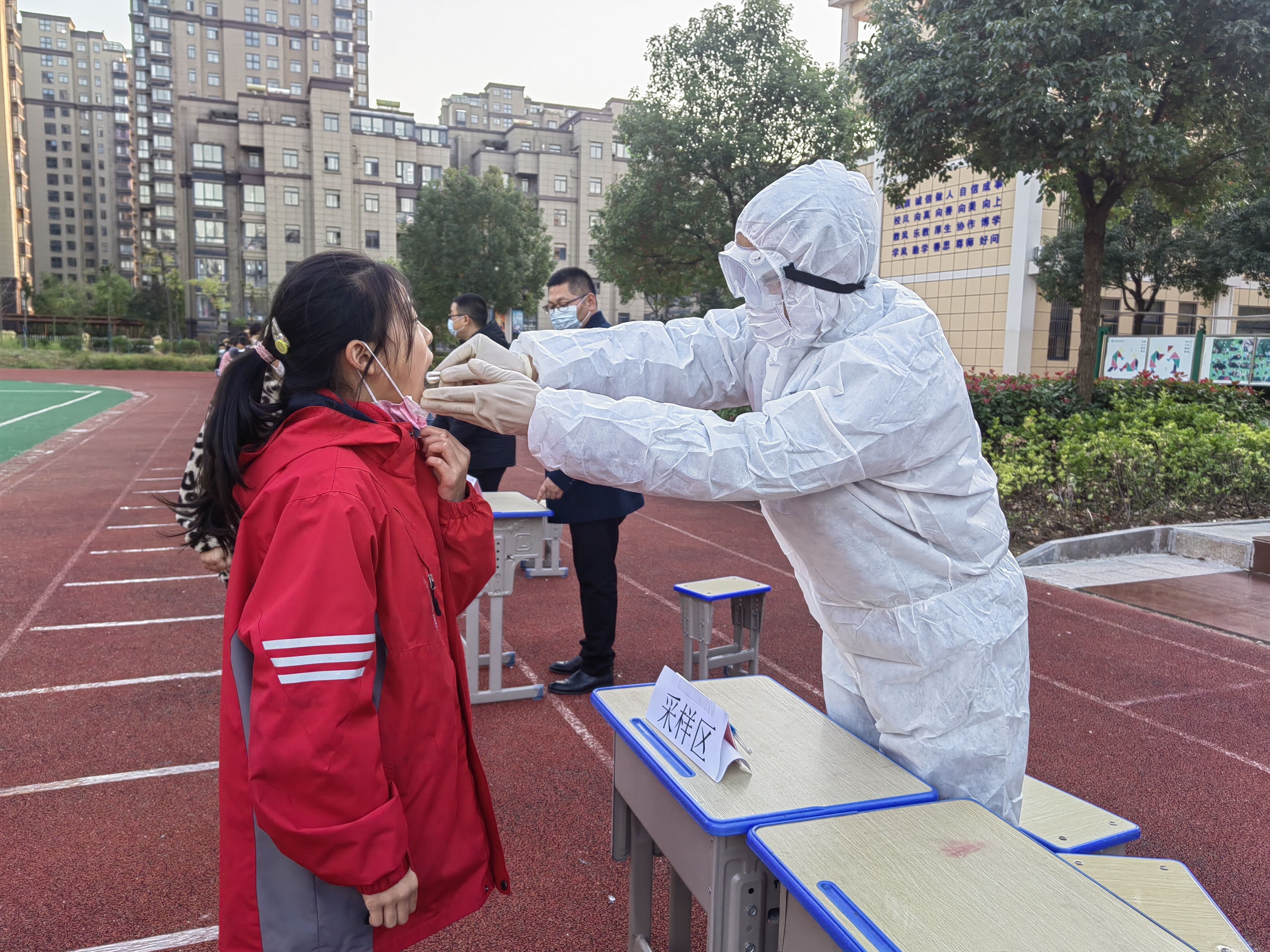 11月10日,新区实验学校教育集团各校区开展了核酸检测演练活动。