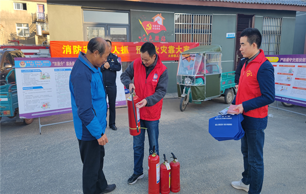 ~ 首先由镇消防工作人员刘辉讲解消防灭火器的种类、构造、如何判别灭火瓶是否在有效期内以及使用的时机和操作方法等等。然后由派出所杨青松队长号召大家定期检查家庭线路和用火用气设施规避失火隐患,最后讲解遇到火灾时正确的处理方法,切断火电源,保护人身财产安全,最大可能杜绝“小火亡人”的悲剧发生。