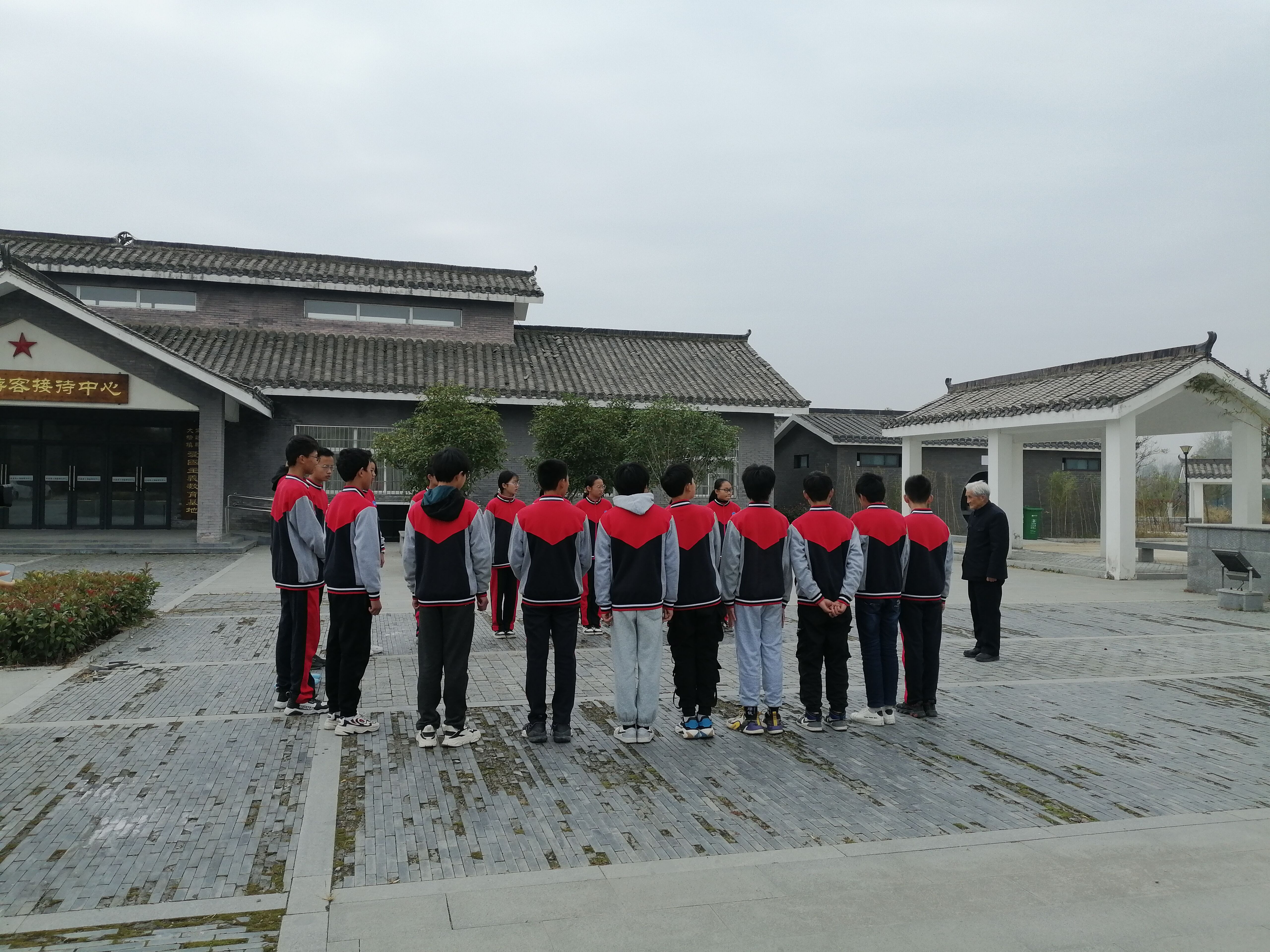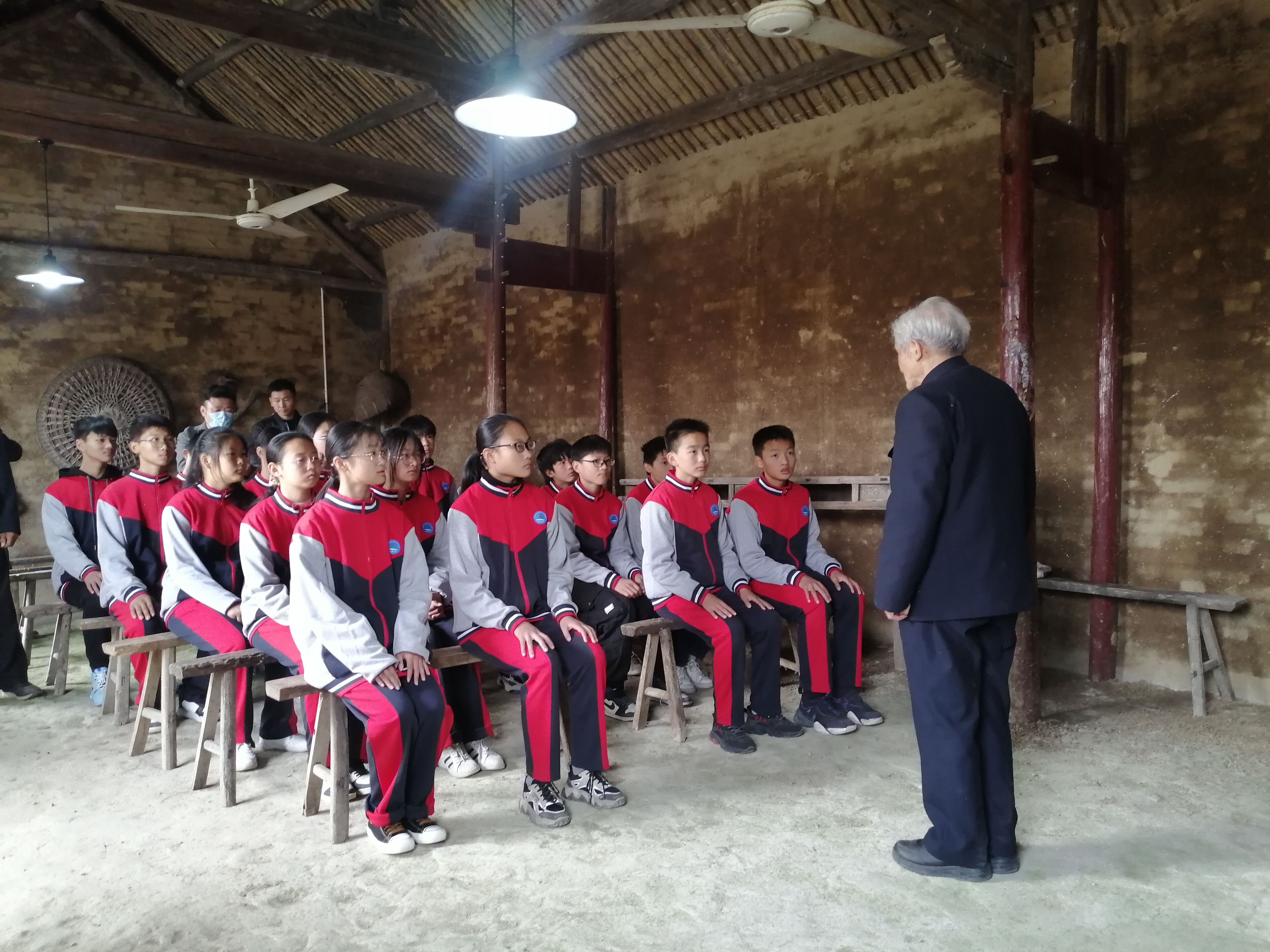 11月17日,“全国道德模范”——定远县朱湾初中退休教师严明友老人来到革命老区大桥镇,参观了刘少奇故居,向大桥初中师生们传扬革命精神,并教唱经典红歌。大桥初中校长许培铜、副校长赵朝喜带领部分学生参加了活动。
