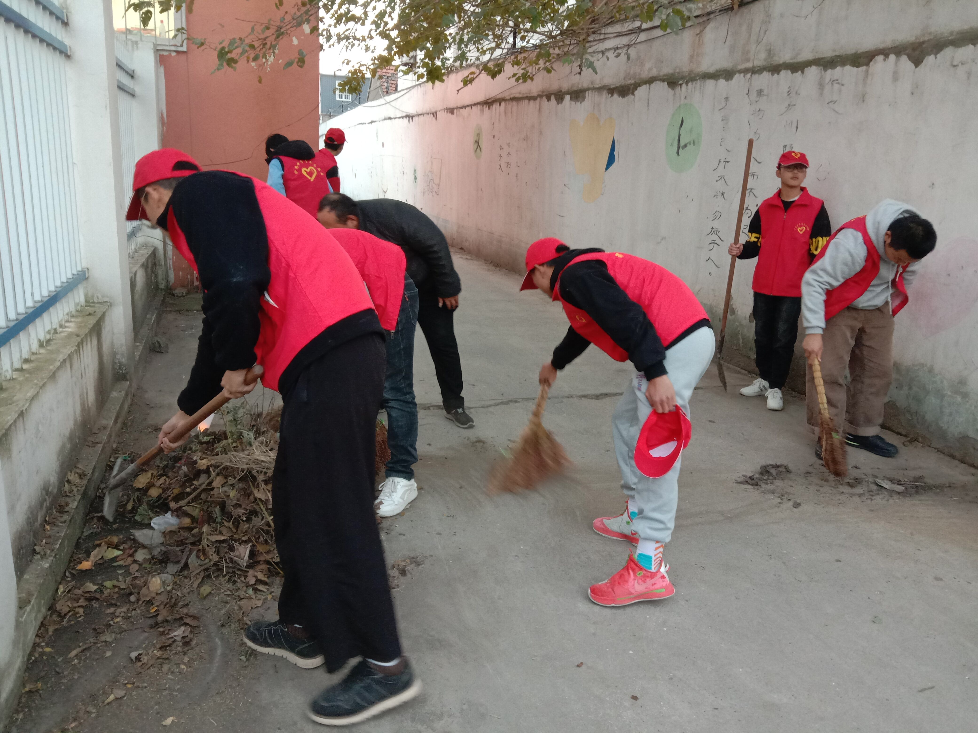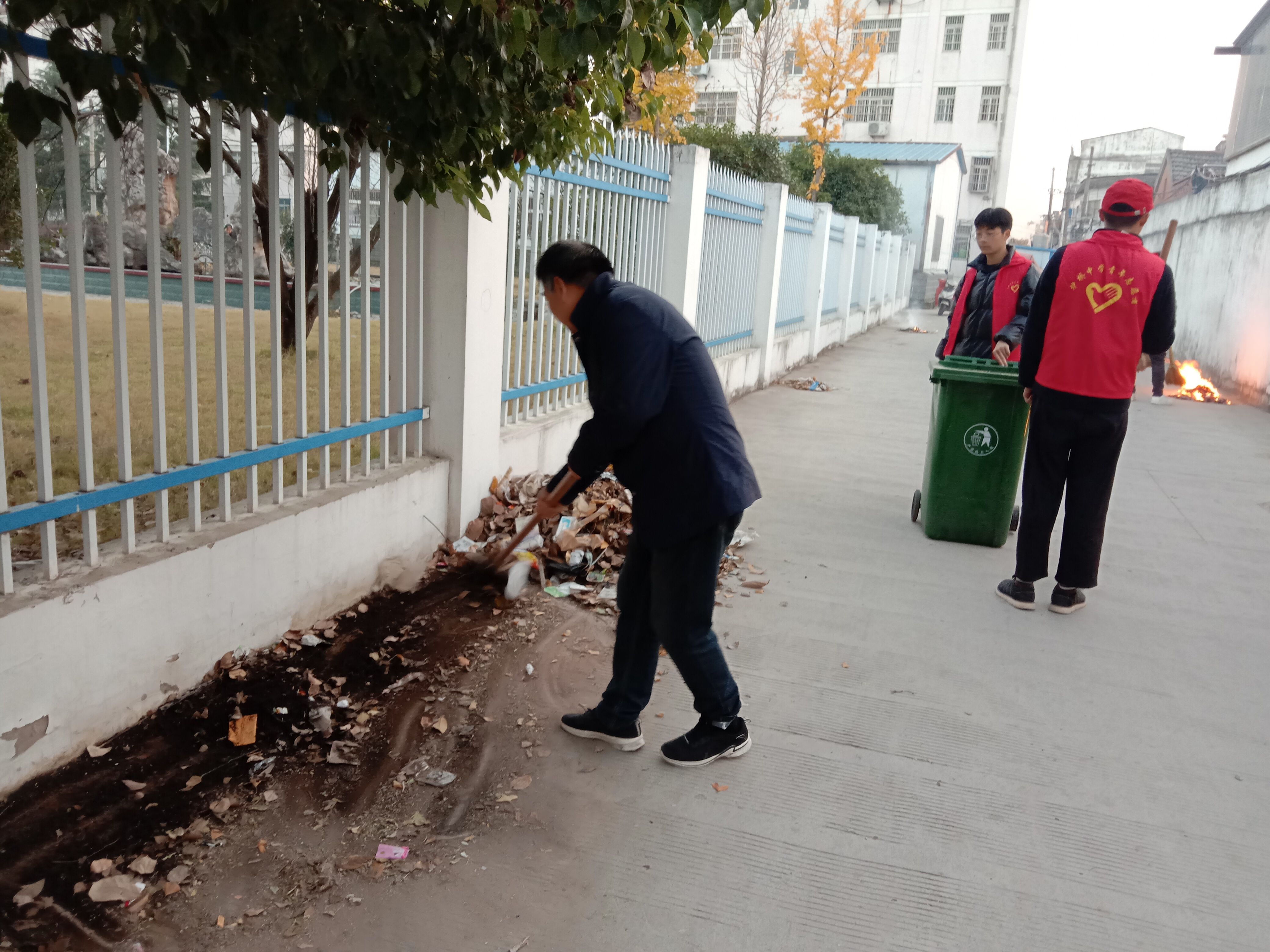 ~ 学校党员干部带领志愿者们拿着扫把、铁锹等清扫工具有序来到社区,对社区道路进行清扫。大家分工合作,不放过任何卫生死角,认真清扫路面的每一处垃圾纸屑,路过的居民无不点头称赞,向这群“红马甲”投来赞许的目光。经过近一小时的劳作,小区的道路又恢复了干净整洁的面貌。