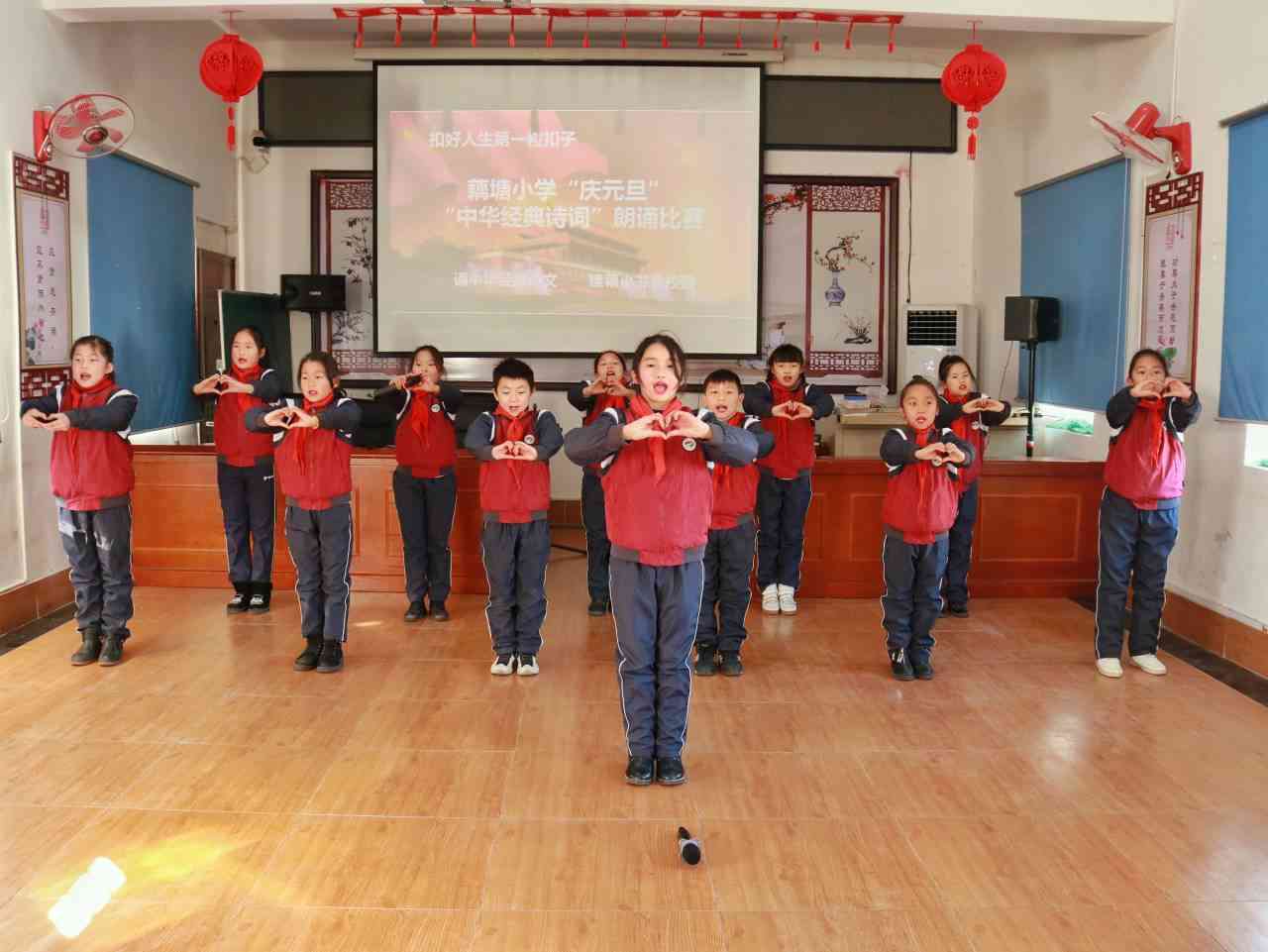 为进一步推进书香校园建设,营造浓郁的校园读书氛围,促进学生养成阅读经典诗词的良好习惯,2019年12月31日下午,藕塘小学举行“扣好人生第一粒扣子——庆元旦中华经典诗词”朗诵比赛。全体参赛同学用诗文朗诵的形式展示文化素养,欢度元旦佳节。