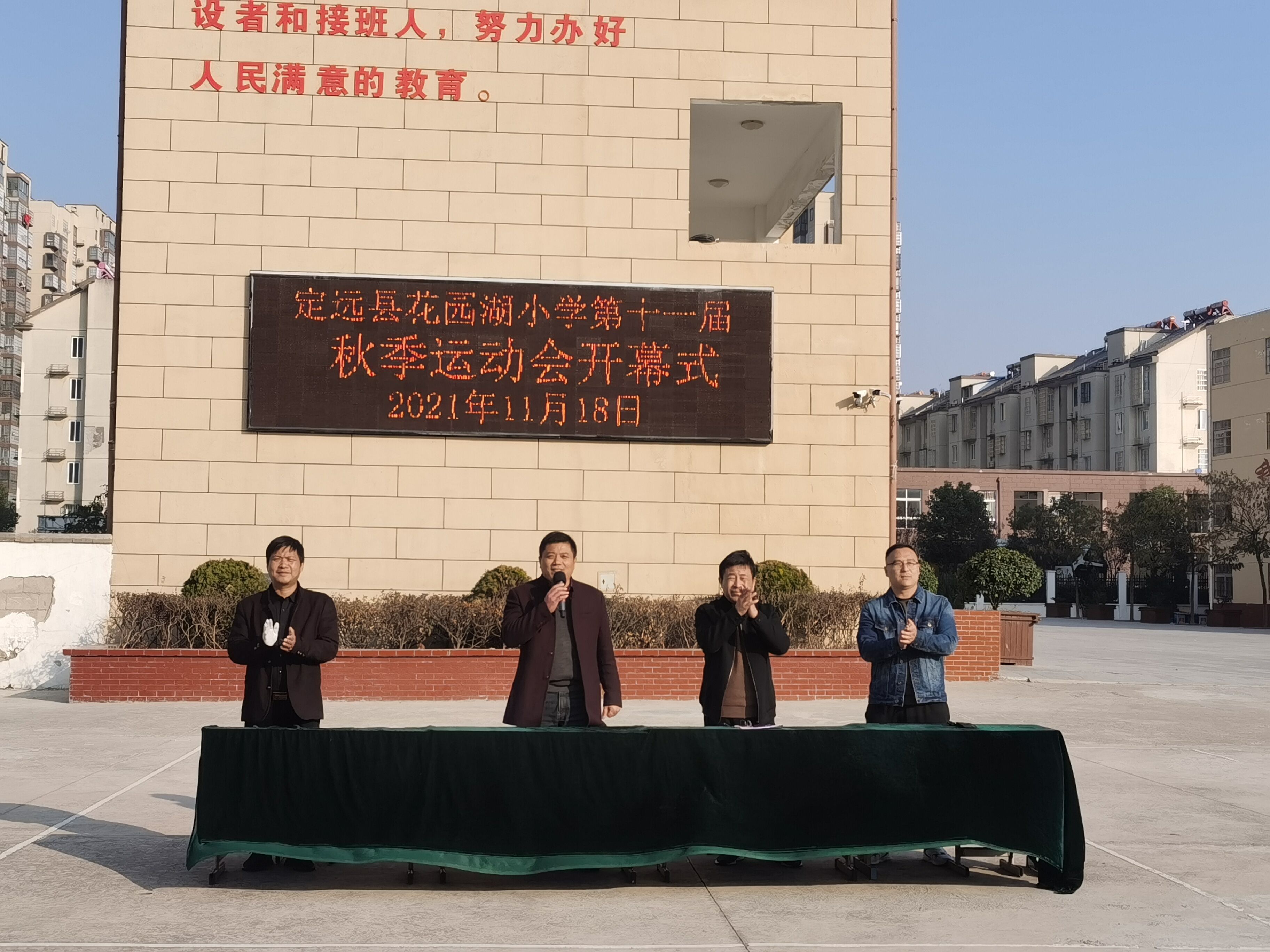 ~ 为深入落实“双减”政策,实现全员育人、全方位育人、全过程育人的目标,从而进一步丰富校园文化生活,弘扬学生顽强拼搏的体育精神,2021年11月18日——19日,第十一届秋季运动会的集结号在定远县花园湖小学吹响。