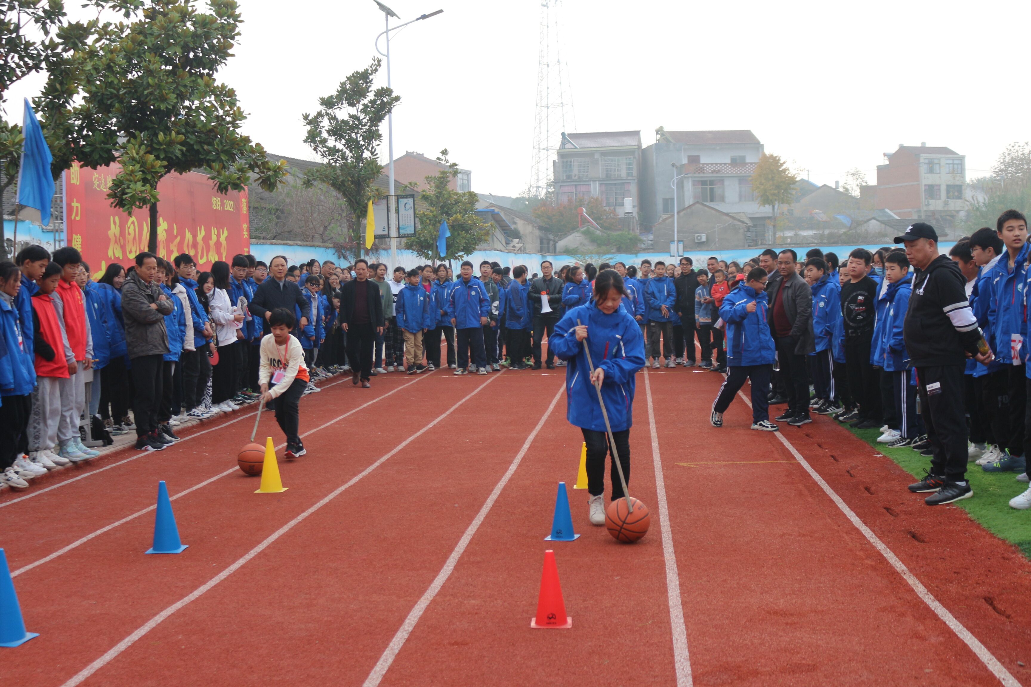 ~ 本届运动会为期一天半,项目设有100米、200米、400米、女子800米、男子1000米、铅球、1分钟跳绳、立定跳远等运动项目以及趣味性比赛项目“螃蟹运球”和赶球。赛场上,运动员们奋力拼搏,挥洒汗水,释放激情,努力为自己的班集体争取最高荣誉;赛场外,啦啦队员们都在为本班级的运动员摇旗呐喊,声音一浪高过一浪,成为校园里最动听的乐章。