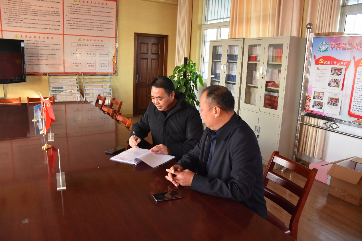 ~ 11月22日,定远县第三责任区张中保督学一行3人来到定远县炉桥第二小学教育集团校本部,就“五项管理”和“双减”政策落实情况;《深化新时代教育评价改革总体方案》要求的“十不得一严禁”相关内容执行情况;党建带团建带队建开展情况进行了督导检查。