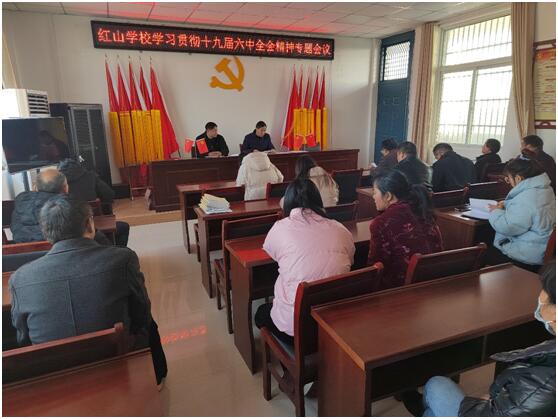 2021年11月15日下午,红山学校召开全体教师会议,学习贯彻党的十九届六中全会精神 。