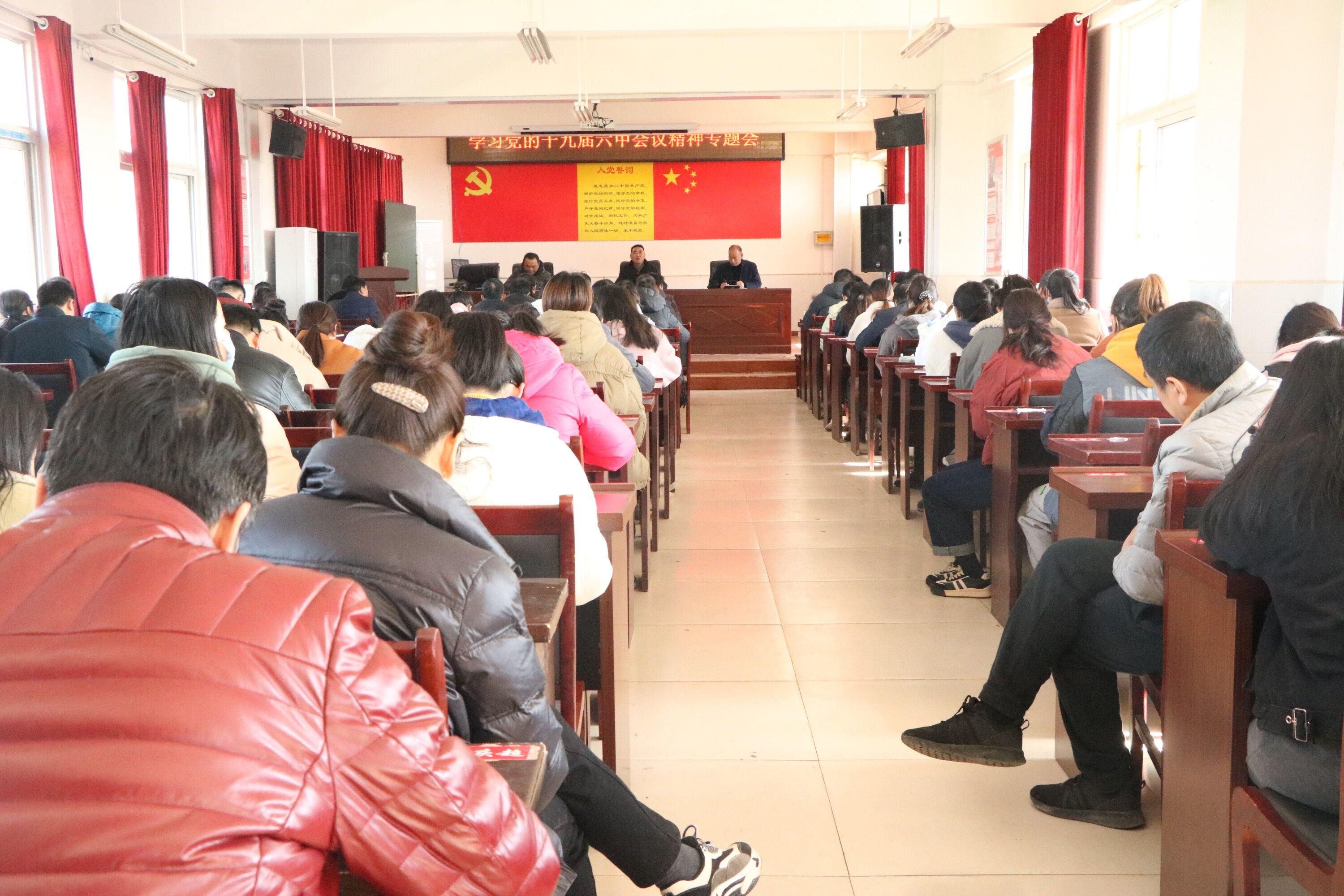 ~ 11月24日,定远县能仁学校召开学习党的十九届六中全会精神专题会。全体教职工参会,会议由校长张中保主持。