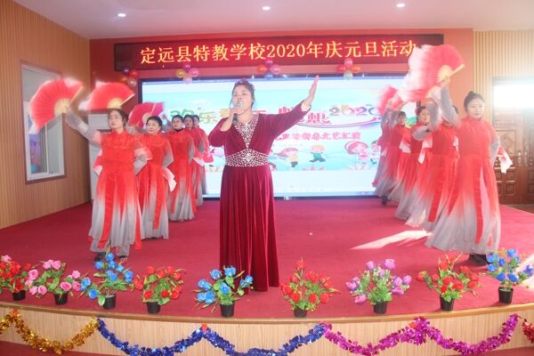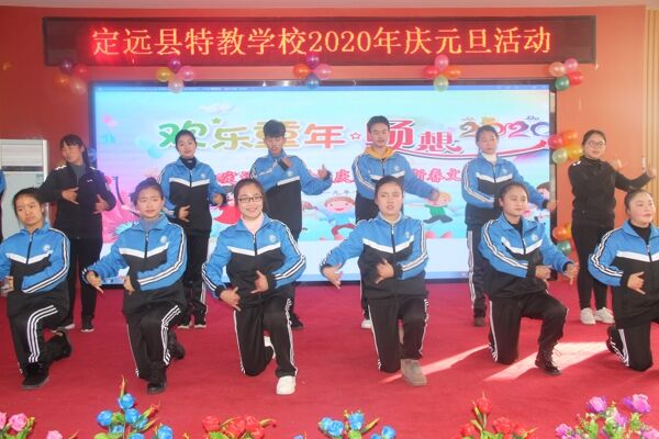 12月31日,定远县特教学校孩子们在教师与家长的陪伴下辞别了2019年的最后一天,欢快热闹地迎接2020年的到来。 学校庆元旦活动从学生的学习生活出发,在活动中让学生 充分展示自我,度过一个丰富多彩的童年,学 校政教处早早制定计划,依托三个教学部组织活动,学生们、老师们自编自演,各显神通,通过舞蹈、诗朗诵、合唱、书写对联等节目形式,充分展示了他们的艺术风采和良好的精神面貌。