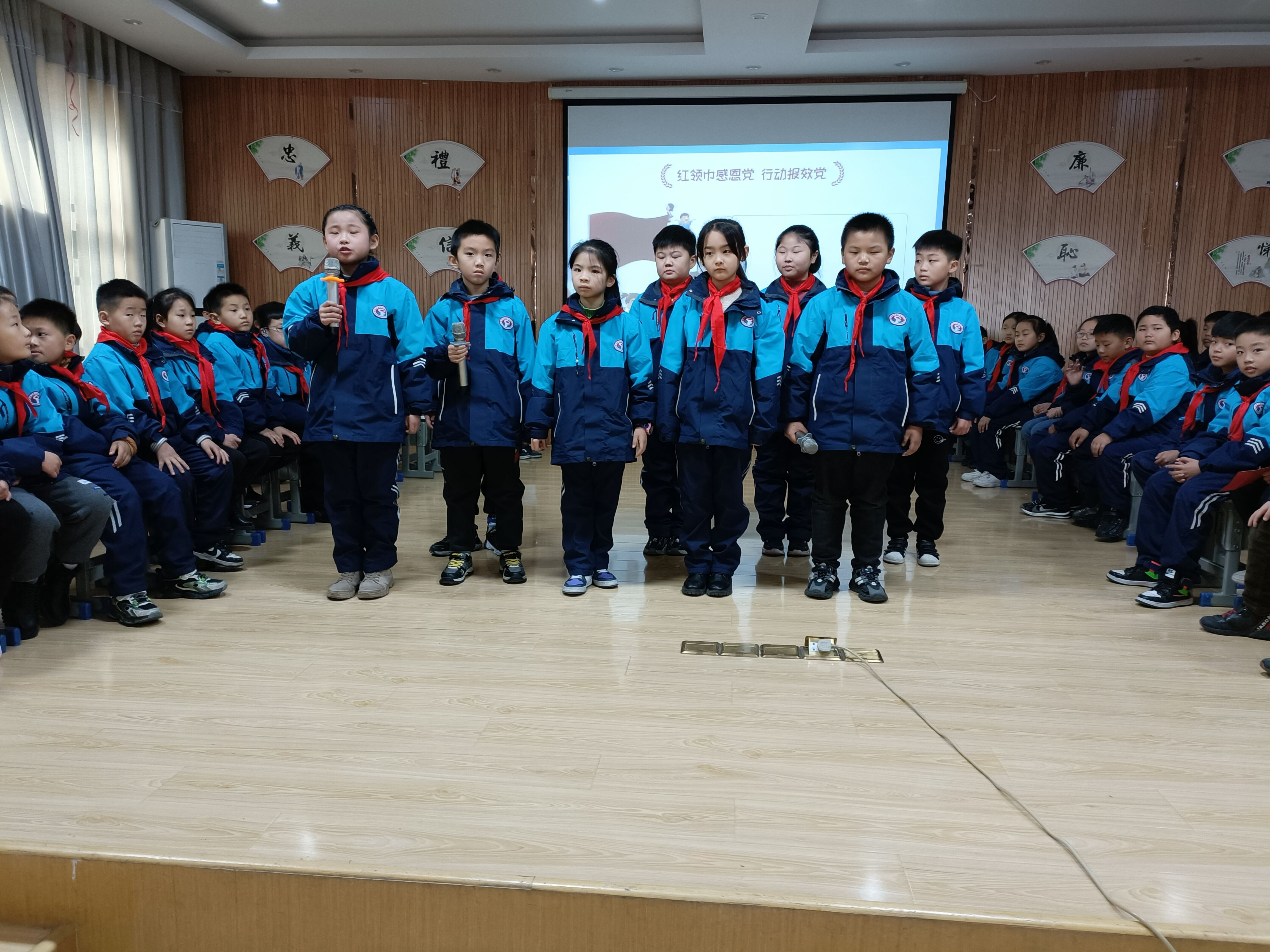本次队会观摩活动由三(1)中队承办,在中队辅导员彭书梅老师的指导下,同学们通过观看视频、讲红色故事、唱经典歌曲等形式,了解中国共产党领导中国人民进行革命、建设、改革的光荣历史,感悟在党的领导下,家乡的历史变迁和取得的丰硕成果。通过歌颂党、歌颂伟大祖国、歌颂中国特色社会主义,抒发对祖国的热爱之情。