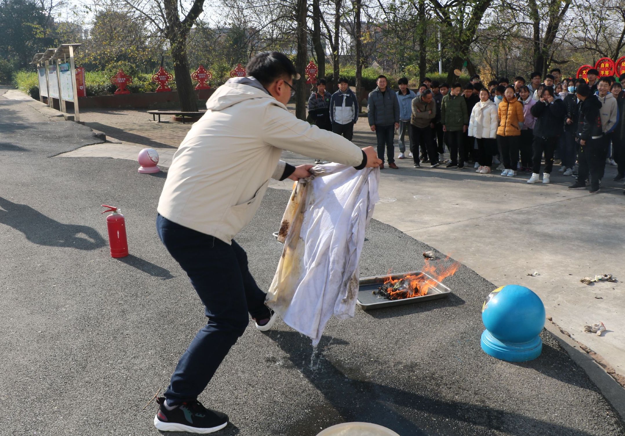 疏散行动结束后,学校组织召开消防安全知识培训会,演练负责人徐虎介绍了逃生注意事项,造成火灾的因素等消防安全知识,并亲自示范灭火器的使用方法,部分学生上台亲身体验了灭火过程,将燃起的火堆成功迅速扑灭。