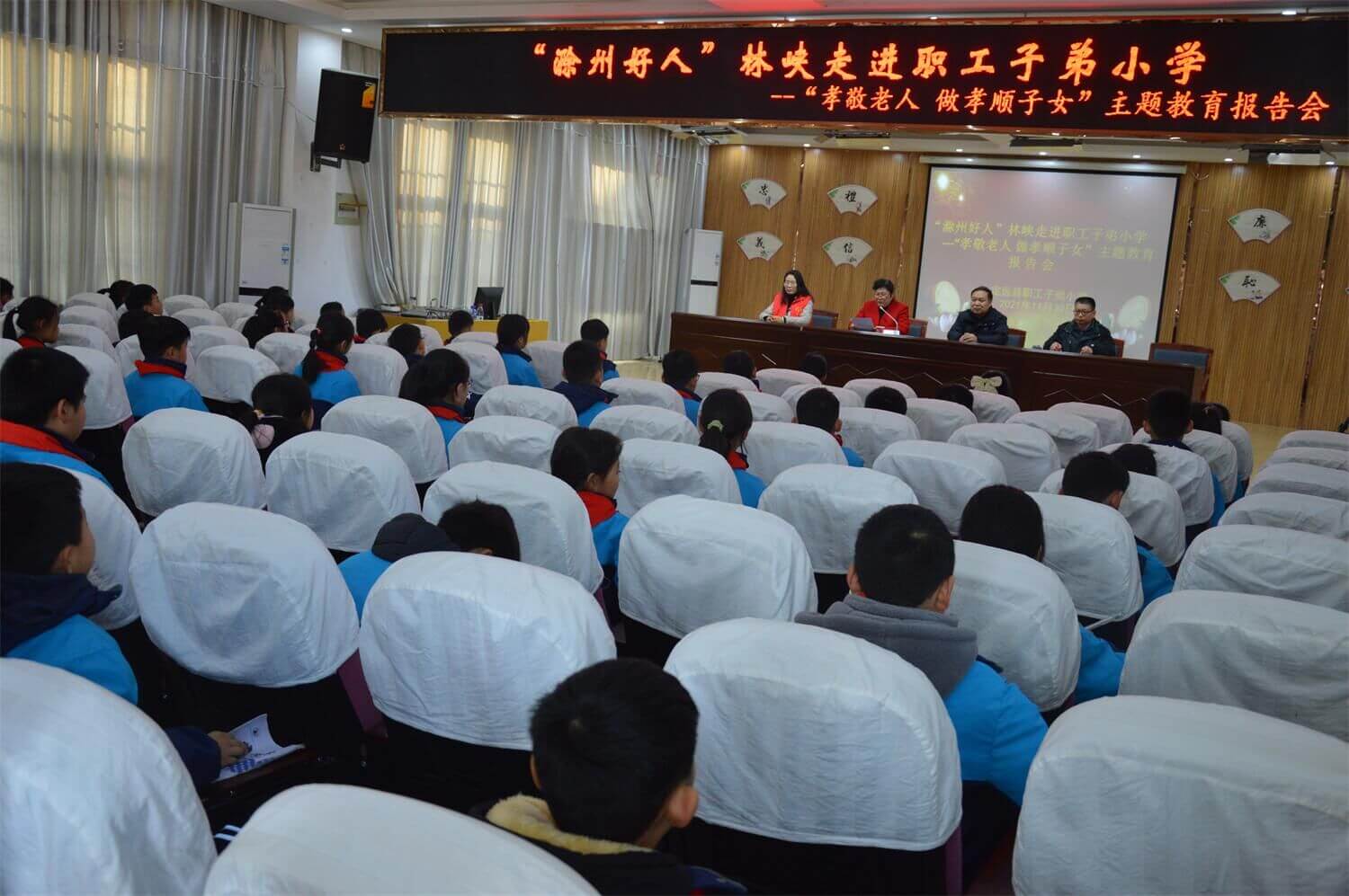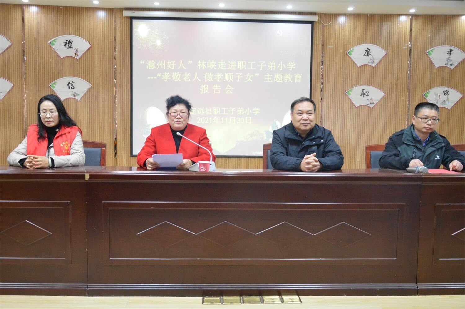 为充分发挥“五老”力量,动员广大“五老”开展隔代教育,11月30日下午,定远县职工子弟小学邀请老模范、滁州好人林峡来校作“尊敬老人、做孝顺儿女”报告,学校关工委主任、党支部书记、校长杨孝前和部分年级学生参加了活动。
