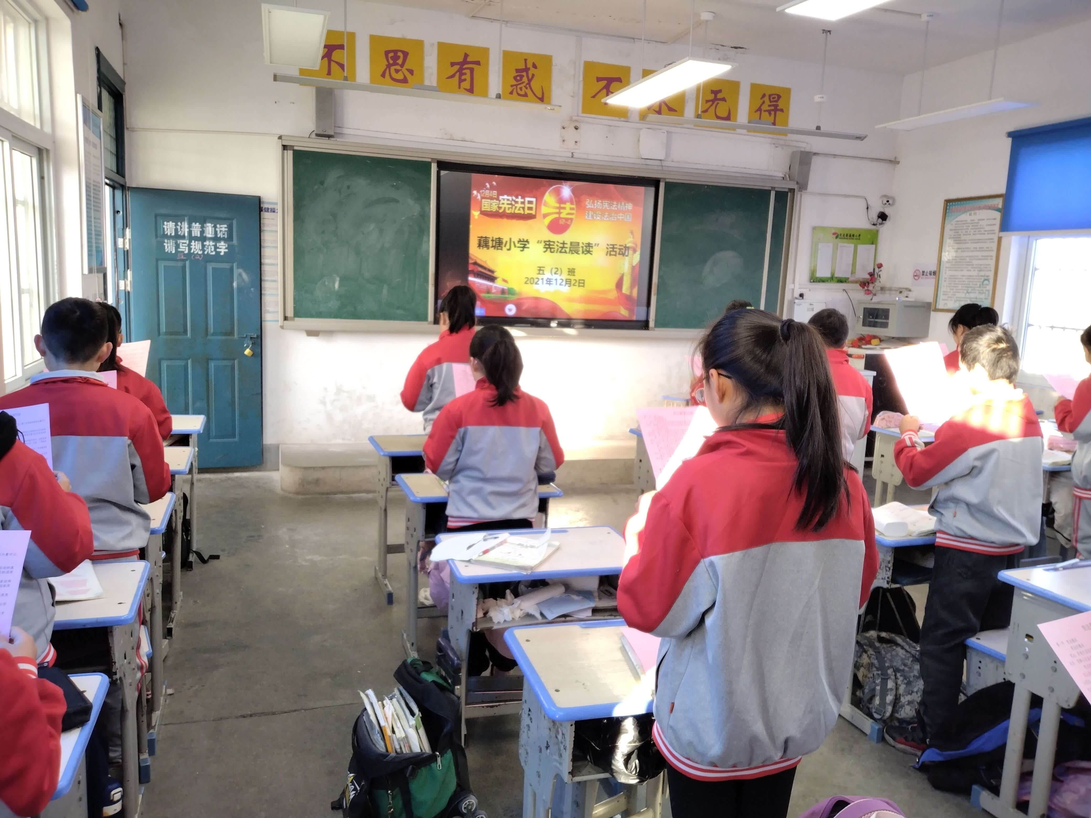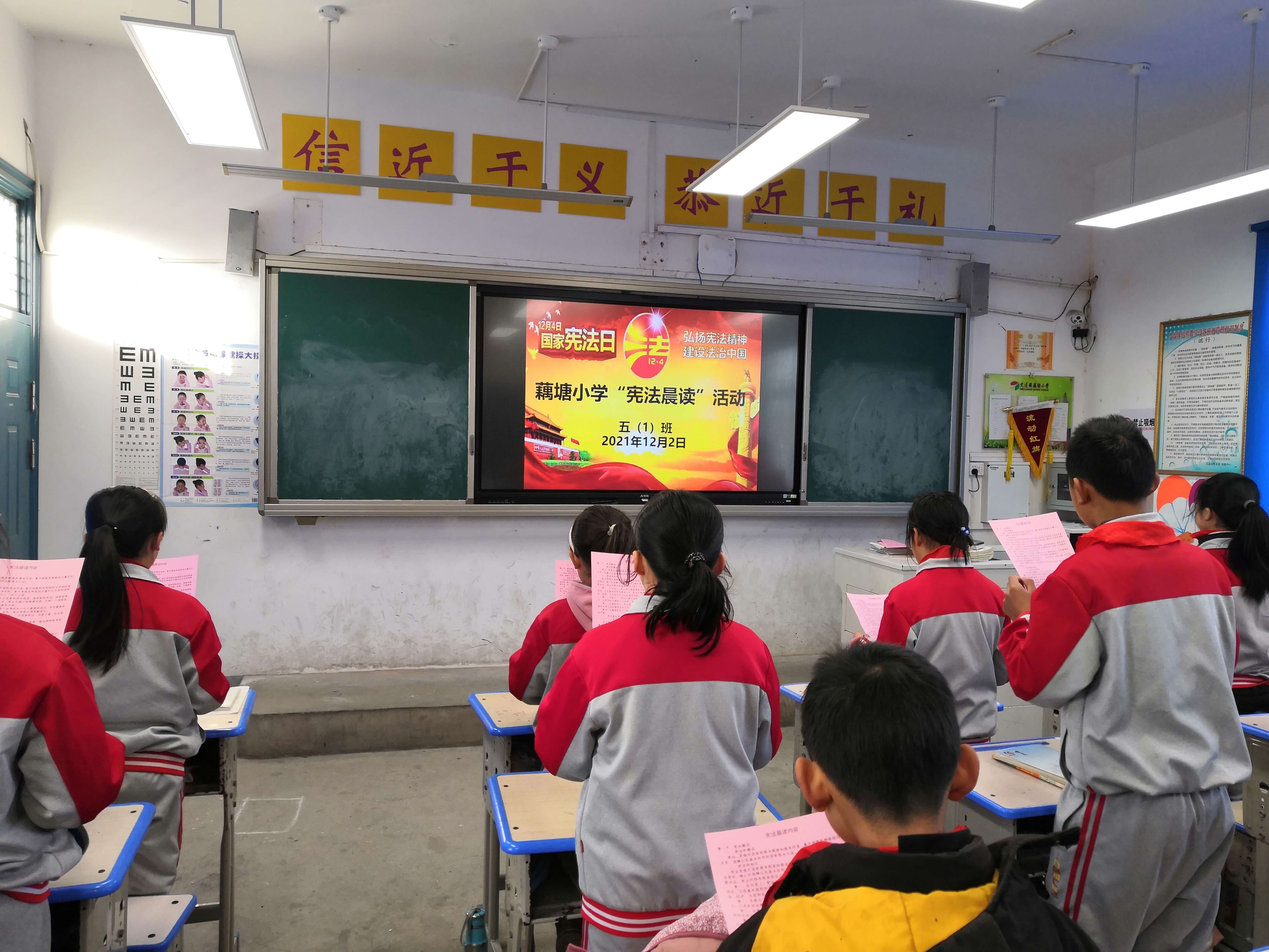 值第8个“宪法日”来临之际,为弘扬社会主义法治精神,进一步提升全校师生的法治观念,建设平安和谐校园,结合学校实际情况,12月2日,定远县藕塘小学组织开展了“宪法晨读”活动。