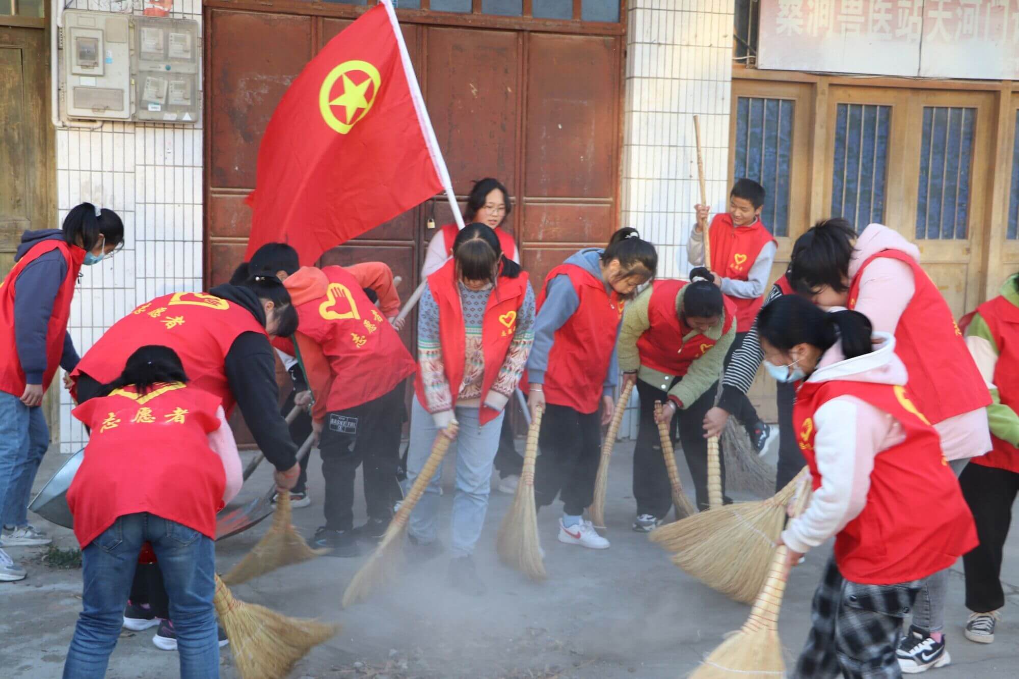 12月2日,定远县天河初中团委组织学校志愿者来到天河社区医院附近义务打扫卫生,给附近居民创造一个卫生、整洁的生活环境。