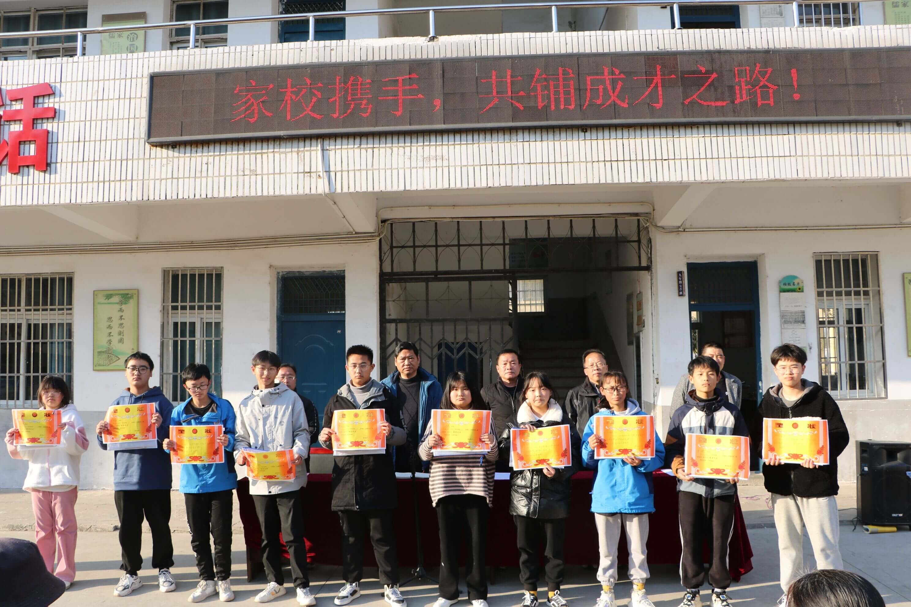 家长会的第一项由学校学校教导处张国永主任总结各班情况,提名表彰了各班在学习、守纪、思想品德、劳动、体育艺术等方面表现优秀的同学。会议第二项由各年级优秀学生代表讲话,他们在讲话中既分享了自己在一些方面努力获得成绩经验,又倡导大家积极进取,争做充满正能量的中学生。会议第三项对各班各方面表现优秀的学生颁发奖状和奖品。会议第四项由学校分管后勤的副校长姚维勇向家长汇报学校寄宿制管理情况,要求大家相信学校能为学生创造一个温馨舒适的住宿和生活环境。会议第五项由金世权校长作总结讲话,他全面地向家长汇报了学校”双减“、课后服务、”五项管理“、寄宿制等方面的情况,希望家长要充分相信学校会为孩子提供一个良好学习和生活环境,相信学校会把每一个努力进取孩子培养成材;同时要求家长积极同学校和老师加强沟通联系,对学校方方面面的工作提出宝贵建议,帮助学校提高办学水平。
