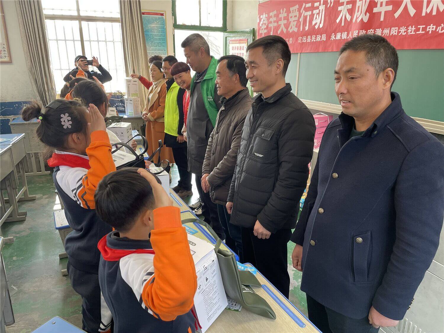~ 12月5日是第36个国际志愿者日。滁州市民政局、定远县民政局、永康镇人民政府等部门与滁州阳光社工中心、定远曲阳社工中心、滁州市草根爱心公益协会在永康小学教育集团共同举办了“牵手关爱行动”关爱永康镇困境儿童公益活动。