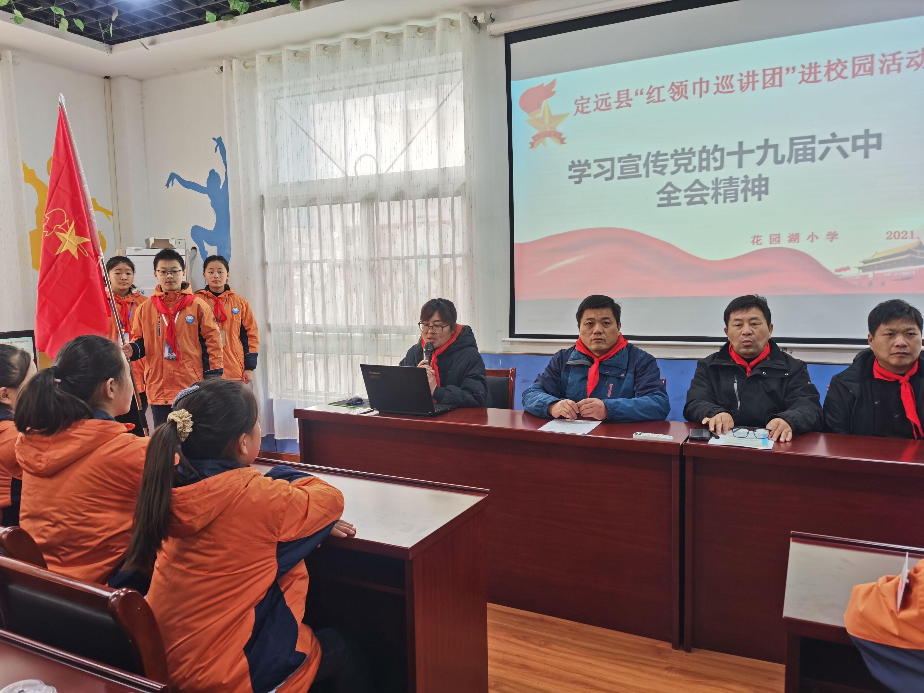 ~ 12月10日,定远县花园湖小学在会议室为大队委110名少先队员宣讲党的十九届六中全会精神。 ~ 本次宣讲活动的主题是“请党放心 强国有我”,宣讲活动由定远县红领巾巡讲员孙莉老师…