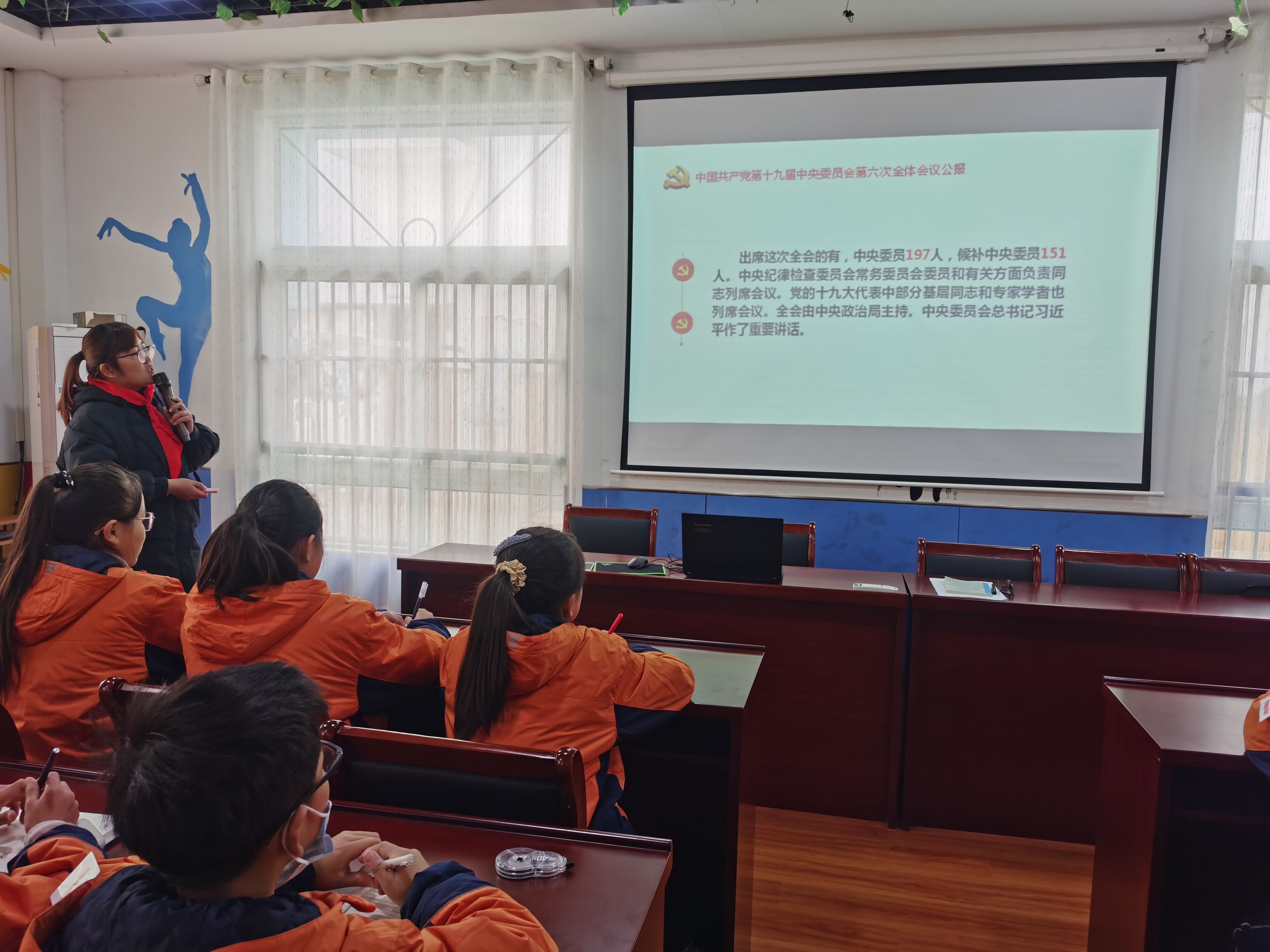 ~ 12月10日,定远县花园湖小学在会议室为大队委110名少先队员宣讲党的十九届六中全会精神。