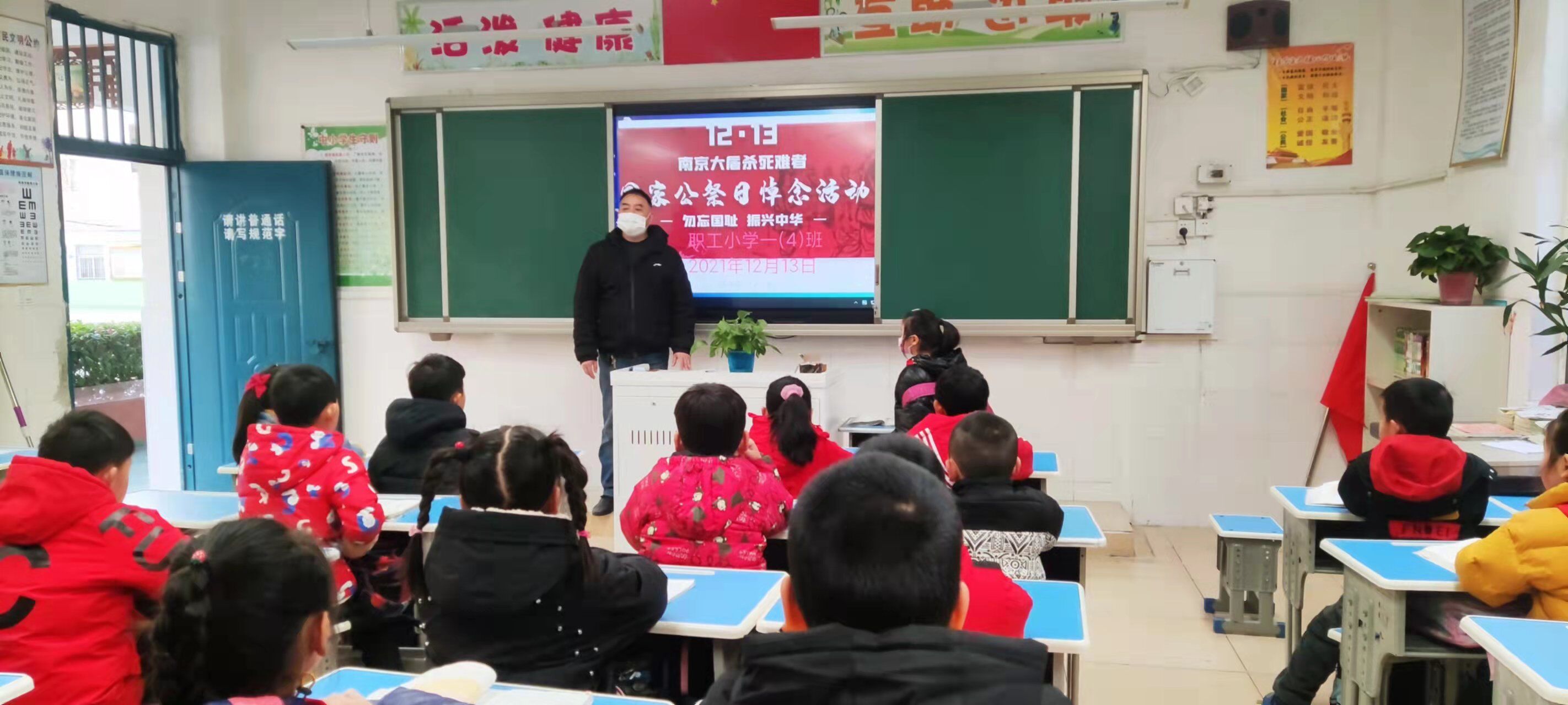 12月13日上午,定远县职工子弟小学利用国旗下讲话时间,组织开展了国家公祭日活动。活动中,学校大队部大队长通过国旗下讲话,向同学们介绍国家公祭日的具体情况。她说到,1937年的12月13日,侵华日军侵入南京实施长达40多天灭绝人性的大屠杀,30万生灵惨遭杀戮,人类文明史上留下最黑暗的一页。从1994年开始,江苏和南京都会在每年的12月13号举行哀悼仪式,包括撞和平钟、敬献花圈。2014年2月27日,中国十二届全国人大常委会第七次会议通过决定,将每年的12月13日设立为南京大屠杀死难者国家公祭日。2014年12月13日,国家举行了首个公祭日,党和国家主要领导人出席,南京全城默哀。