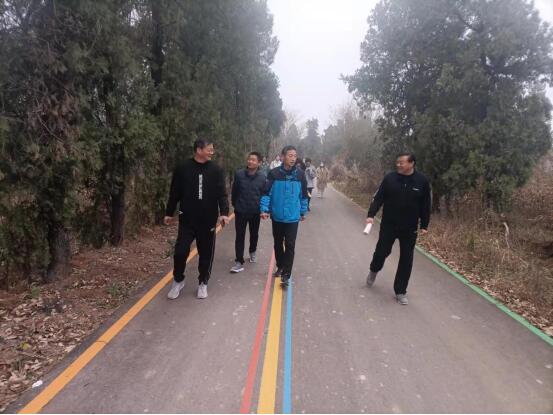 ~ 活动前,该校工会主席张文同志会同工会委员们做了详细的活动计划和活动流程,并提前做好活动筹备和预案。早晨7点半大家在县城郊区东北面的泉坞山公园集合,工会主席张文在活动开始再次提出有关徒步要求。公园门口集合后,全体教职工统一从公园门口右边的环山路口出发。虽然这是座新开发的城市氧吧公园,还流淌着乡村的泥土气息,但其中的山水却透露着一股灵韵。“登山跨晓风,瞪目俯秋空。云雾迷沉碧,朗日投天穹。”——深秋初冬的早晨,天气寒冷,雾气未散,但这丝毫没有影响我们的心情。同事们,三五人一排,带着愉悦的心情,迈着矫健的步伐,唠着家常、聊聊近期的工作,漫步在谷幽林深的环山路上,四周雾气缭绕,虽然是初冬但林中仍是保留着春的苍翠。我们穿过木林,凝望田野,感受着清新的空气、幽雅的环境、风景宜人。这种美好的景象,不仅拨动着我们每个人的心弦,也拨动着美好的希望。这不得不让人有种“人能常清静,天地悉皆归”的平静的感觉。