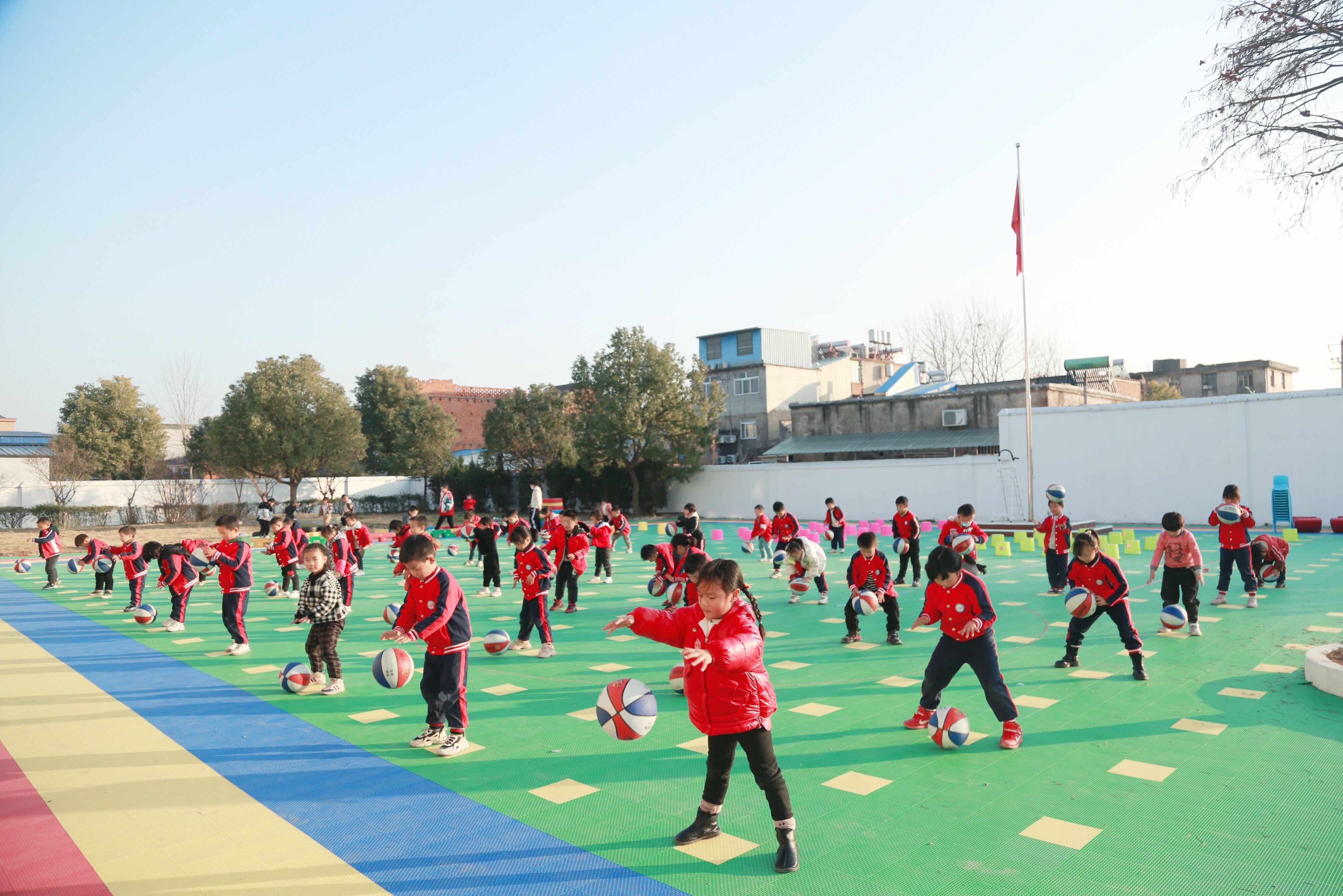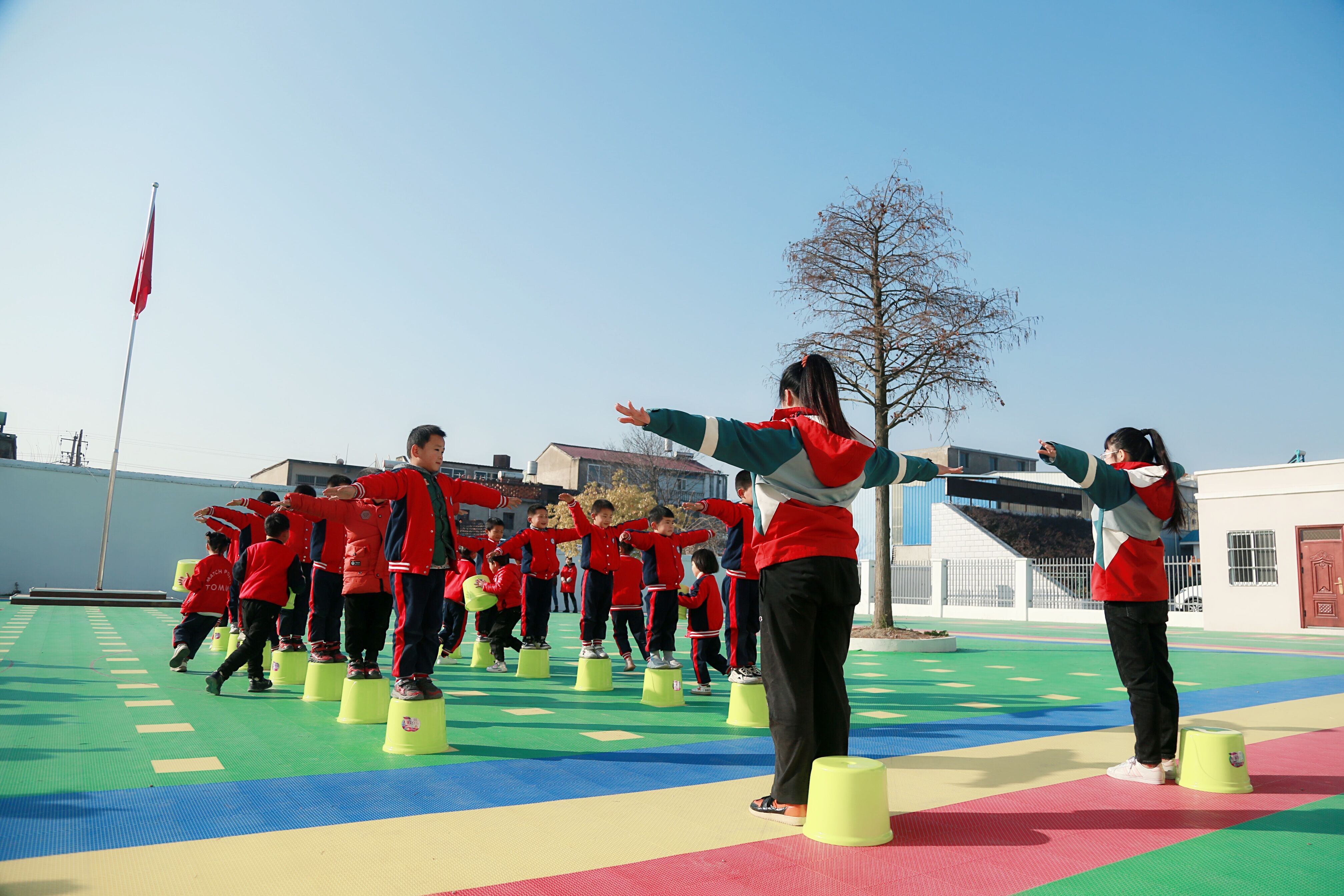 ~ 为增强幼儿体质,提高健康水平,发展动作协调能力,培养幼儿集体观念和团结协作的精神,12月22日,定远县炉桥镇第一小学教育集团西校区幼儿园举行了"早操直播展示活动。”