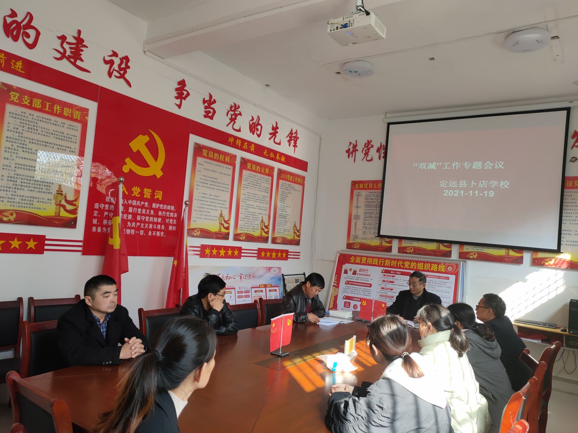 ~ 11月19日,定远县卜店学校召开“双减”工作专题会议,会议由该校校长韩有伦主持,全体教师参加会议。